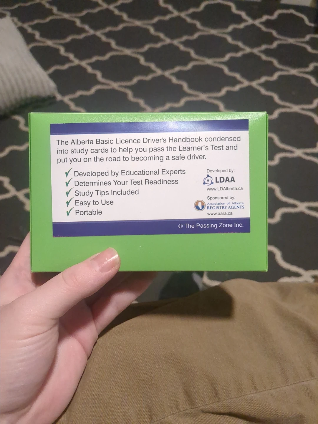 This kit condenses the Alberta Basic Driver's Handbook into study cards to help you pass the Learner's Test. It's developed by educational experts and includes study tips. The cards are easy to read, use and portable