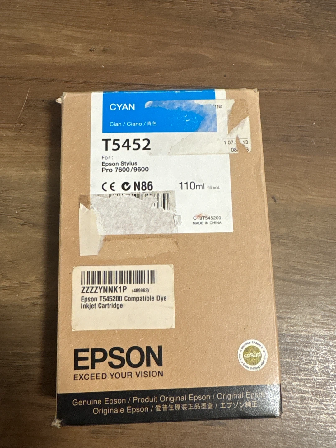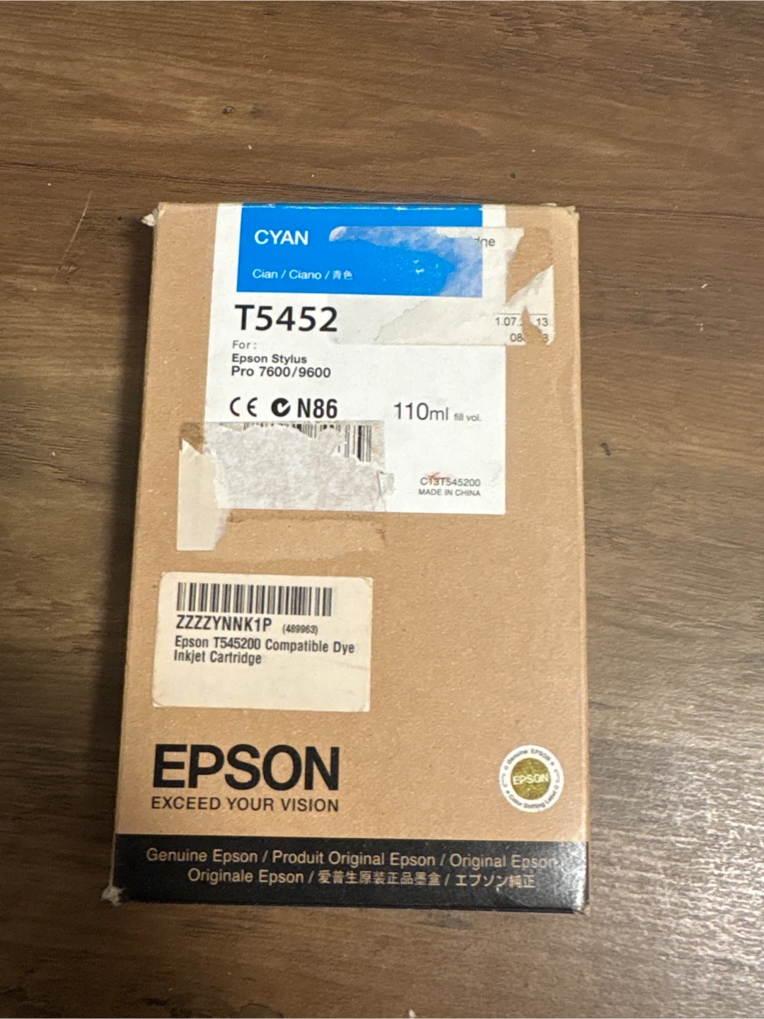 This is a genuine Epson T5452 Cyan ink cartridge. It's for the Epson Stylus Pro 7600/9600 printers. The fill volume is 110ml.