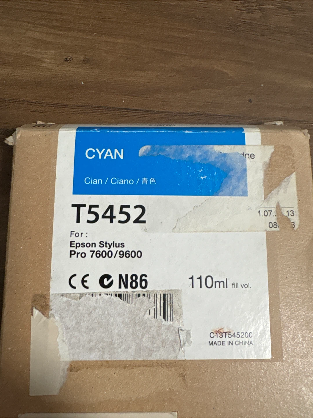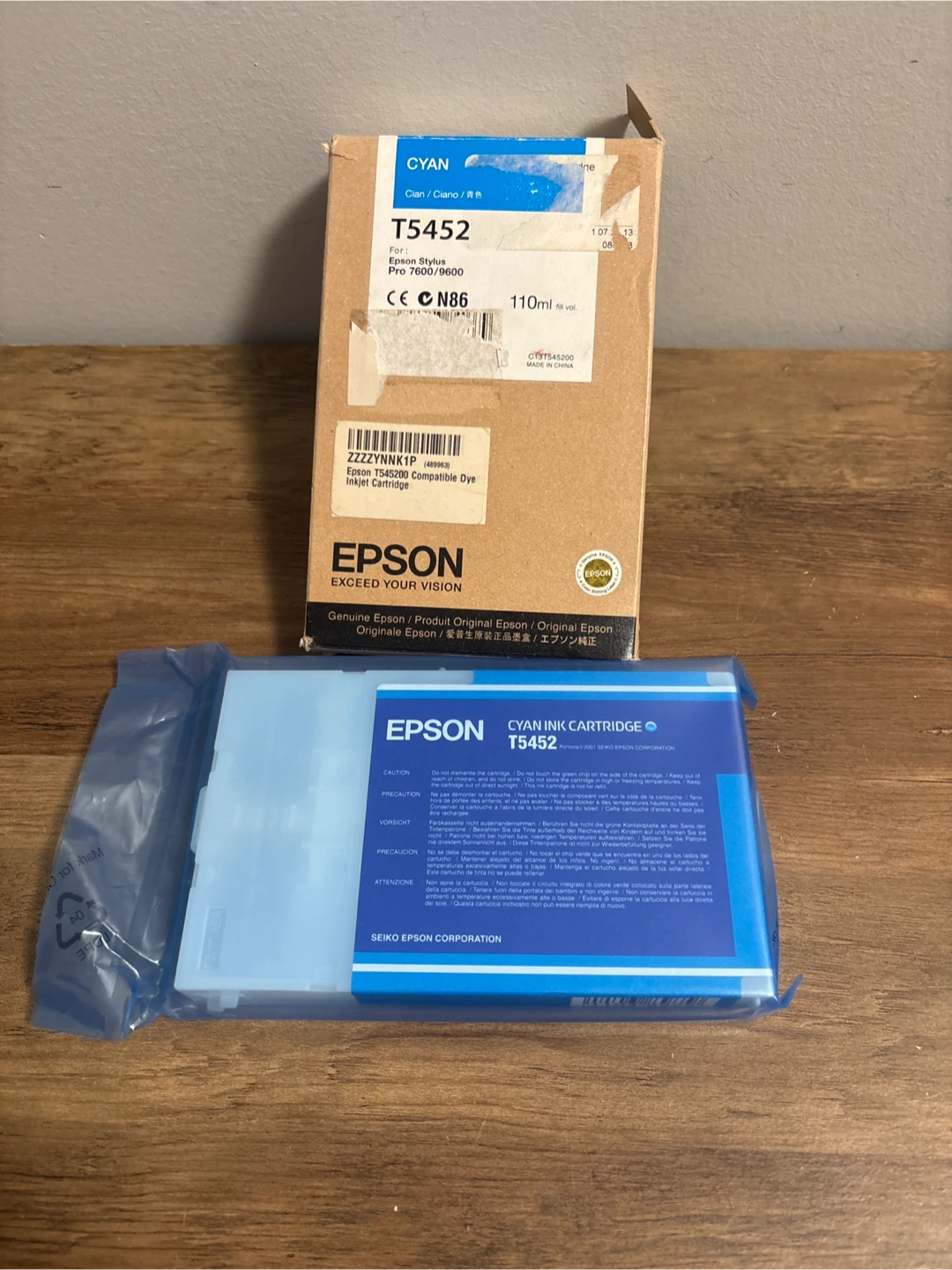 This is a genuine Epson T5452 Cyan ink cartridge. It's for the Epson Stylus Pro 7600/9600 printers. The fill volume is 110ml.