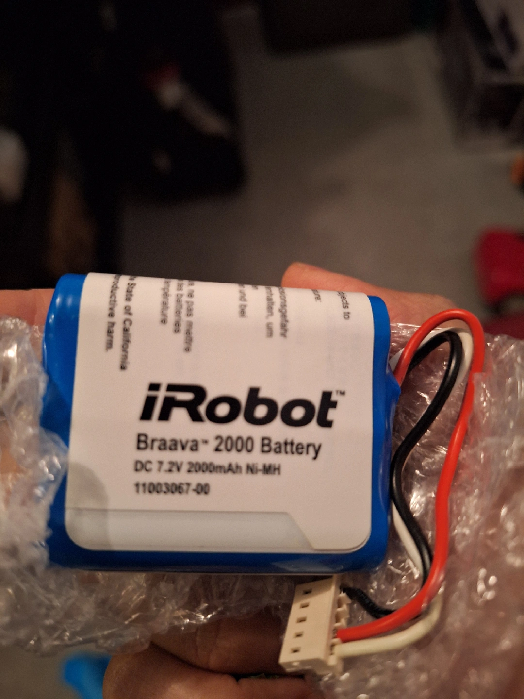 132Selling an iRobot Braava 2000 Battery. It's a DC 7.2V 2000mAh Ni-MH battery.