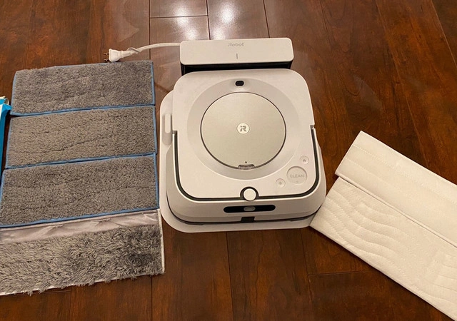 91I'm selling my used iRobot Braava Jet M6 (6110) Ultimate Robot Mop, which is Wi-Fi connected and offers precision jet spray and smart mapping for multiple rooms; it works with Alexa and automatically recharges. It's in good condition and ready to keep your floors sparkling clean! Additional features include: * Precision Jet Spray: Tackles sticky messes, grime, and kitchen grease. * Smart Mapping: Learns, maps, and adapts to your home. * Wi-Fi Connected: Control via the iRobot Home app or voice assistant. * Ideal for Multiple Rooms: Cleans large spaces effectively. * Recharges and Resumes: Automatically recharges and continues cleaning. If the ad is up, it's available, ready to roll and mop!