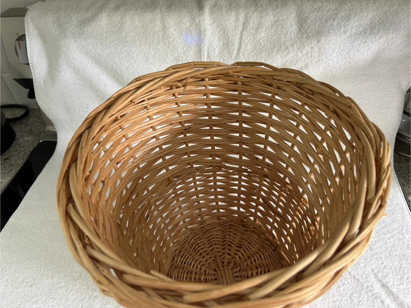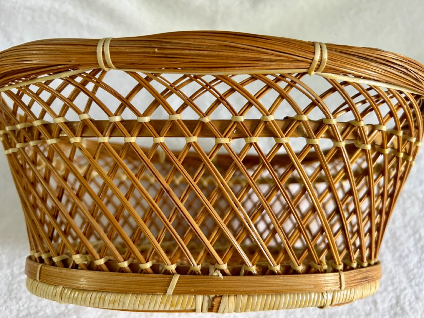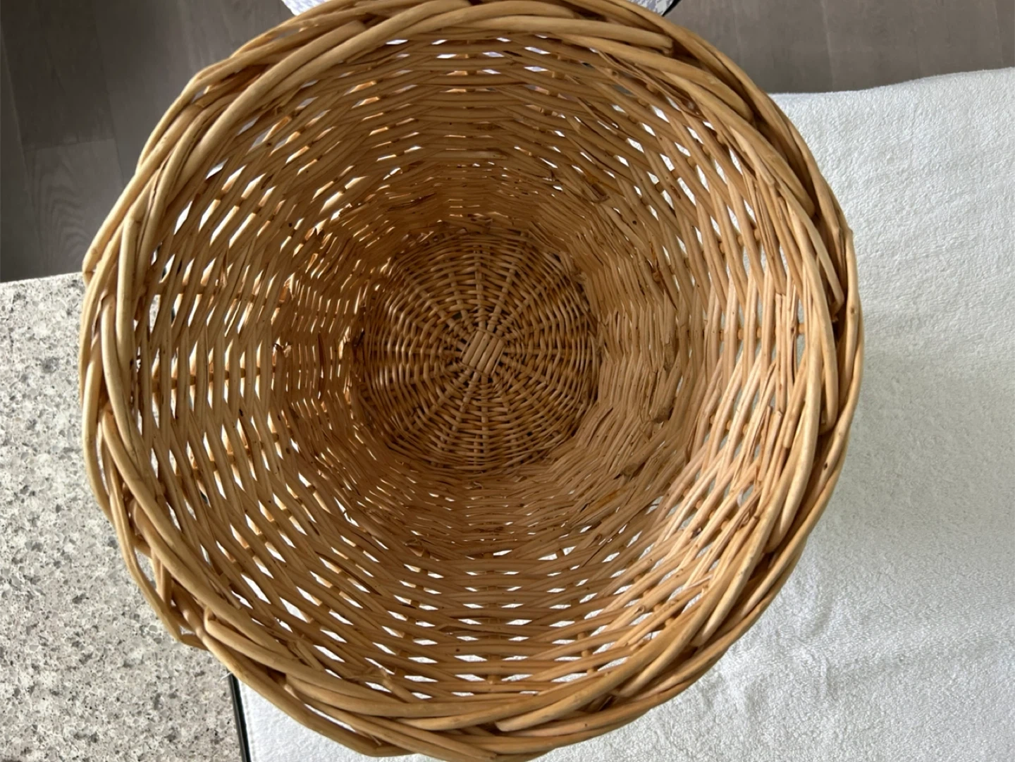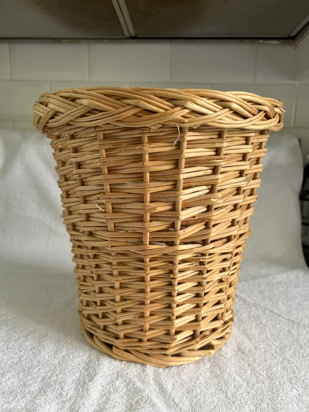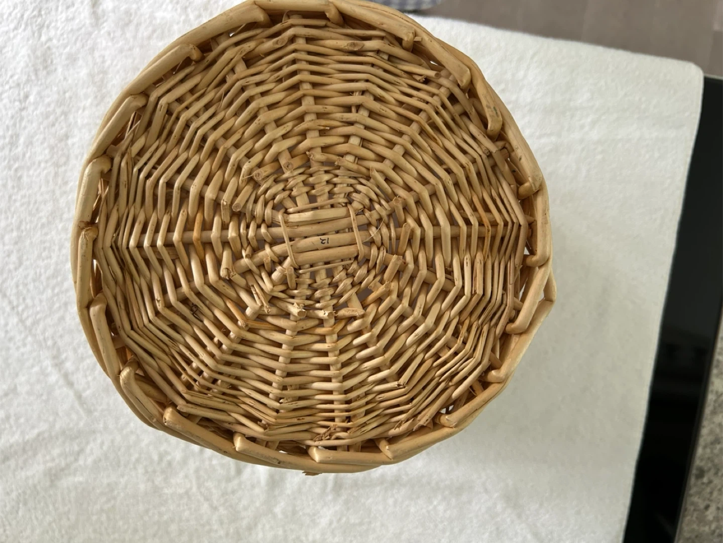Oval basket, 12.25”L x 10”W (top), 9.25”L x 7”W (bottom).