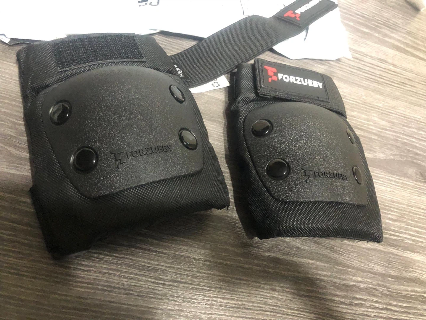 This set includes elbow and knee pads by FORZUEBY. They're black and designed for protection. Includes adjustable straps for a secure fit. These pads are great for sports like skateboarding or cycling!