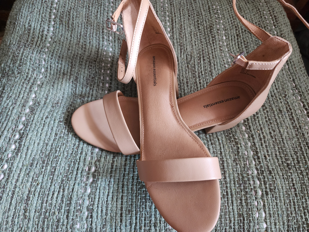 These Amazon Essentials women's heel sandals are in great shape and ready for a new home! They are a size 10 and have a neutral, goes-with-everything colour
