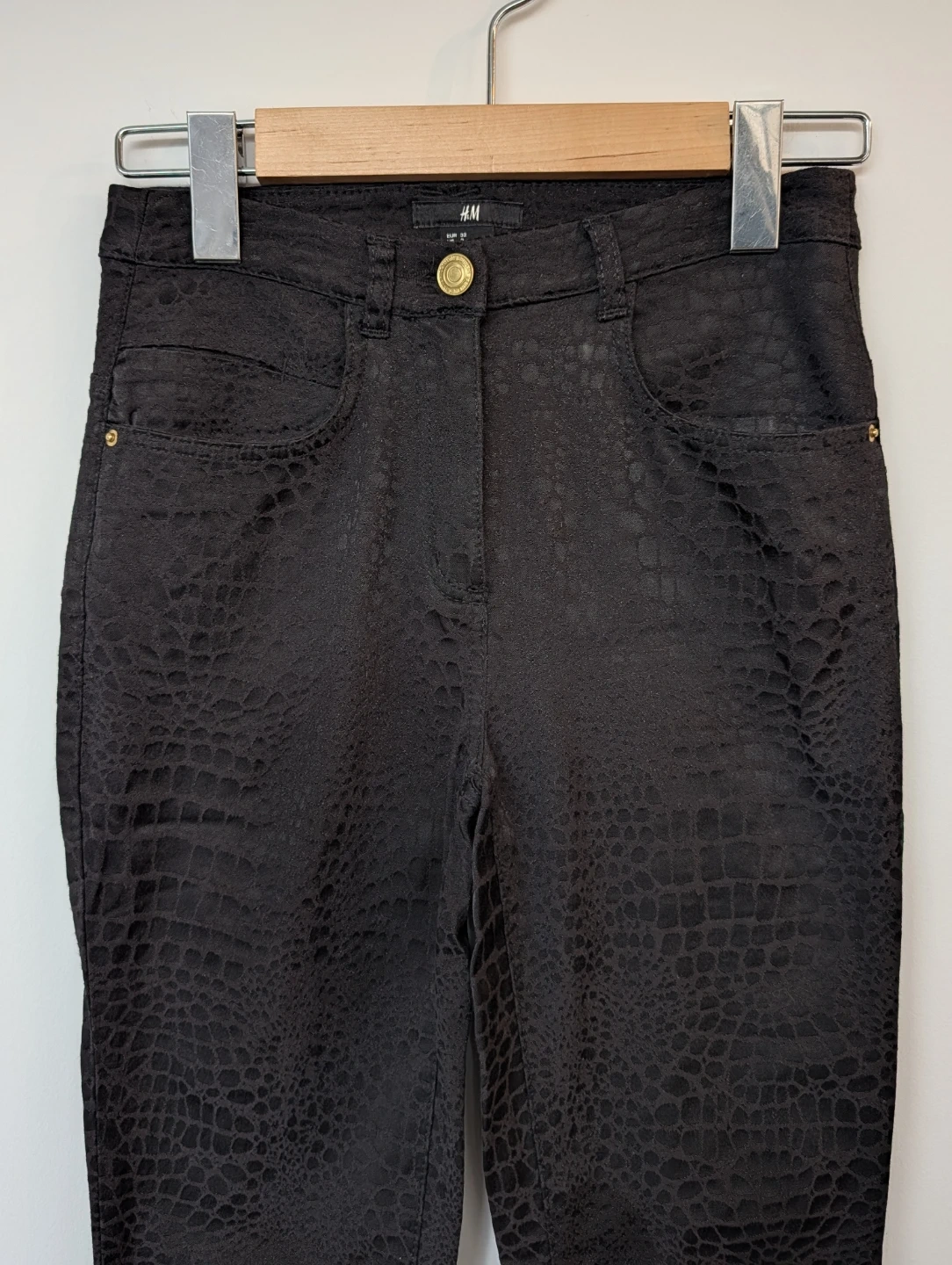 Black H&M skinny high waist pants with a subtle crocodile embossed pattern.