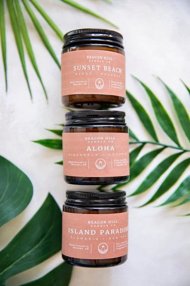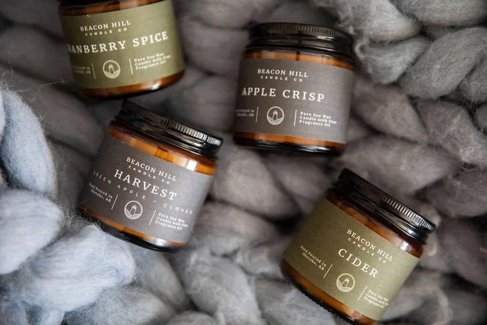 Add warmth and coziness to any space with our hand-poured soy candles in stylish 4 oz amber jars. Made in Okotoks by Beacon Hill Candle Company, each candle is crafted with natural soy wax and premium fragrance oils for a clean, long-lasting burn. Choose from bestselling scents like: Banana Bread, Aloha, Apple Crisp, Mahogany + Teakwood, Coffee House. Perfect for gifting, bathrooms & bedrooms, travel & small spaces, and fall + holiday decor. Clean Ingredients, Made in Alberta, Eco-friendly & Reusable Jar.