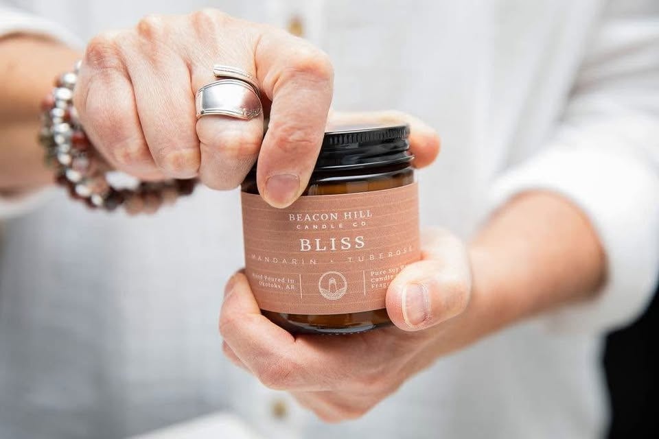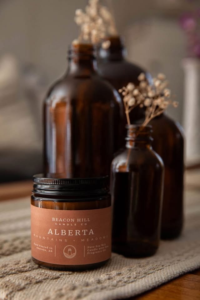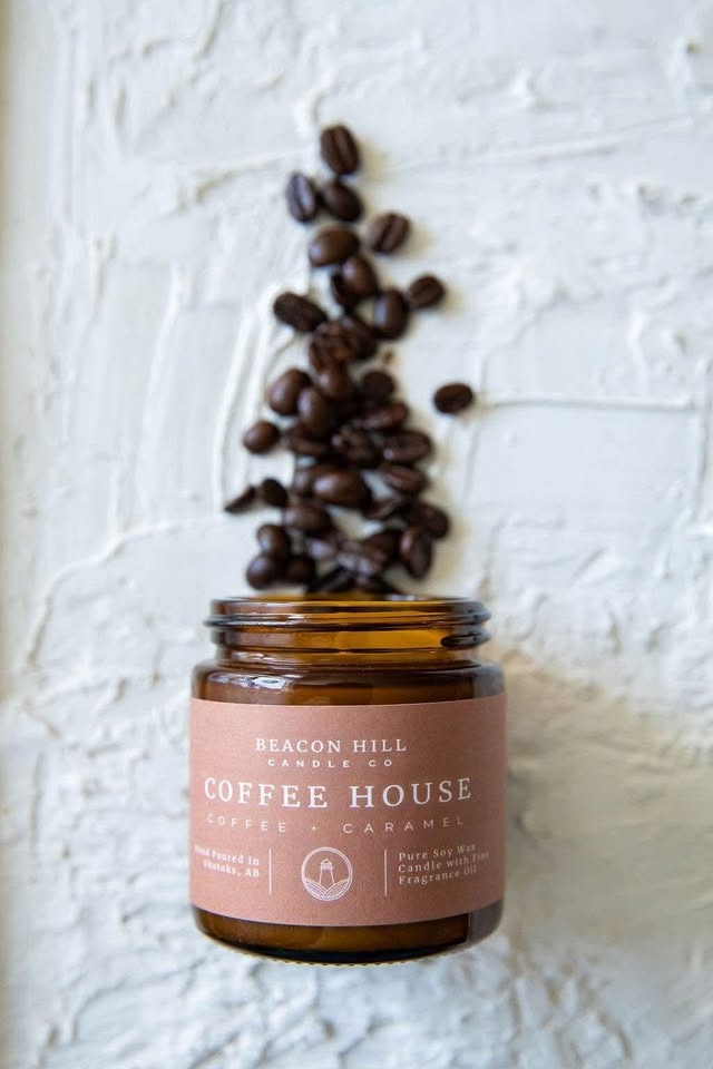 Add warmth and coziness to any space with our hand-poured soy candles in stylish 4 oz amber jars. Made in Okotoks by Beacon Hill Candle Company, each candle is crafted with natural soy wax and premium fragrance oils for a clean, long-lasting burn. Choose from bestselling scents like: Banana Bread, Aloha, Apple Crisp, Mahogany + Teakwood, Coffee House. Perfect for gifting, bathrooms & bedrooms, travel & small spaces, and fall + holiday decor. Clean Ingredients, Made in Alberta, Eco-friendly & Reusable Jar.