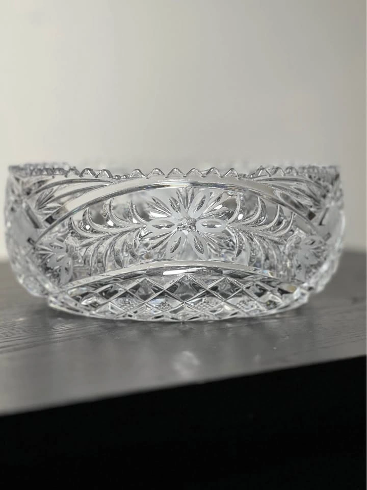 This beautiful Anna Hutte bowl is a must-have for any crystal glass collection. Crafted with care and precision, this bowl boasts a stunning elegance that is sure to catch the eye. Made from high-quality glass, this bowl is both durable and delicate, making it a perfect addition to any table setting. Whether you're looking to serve fruit, salad, or even soup, this bowl is sure to impress. Its unique design and intricate detailing make it a great conversation starter, while its durable construction ensures that it will last for years to come. Pre-owned. Pickup is 58th and 7th Ave in midtown Manhattan.