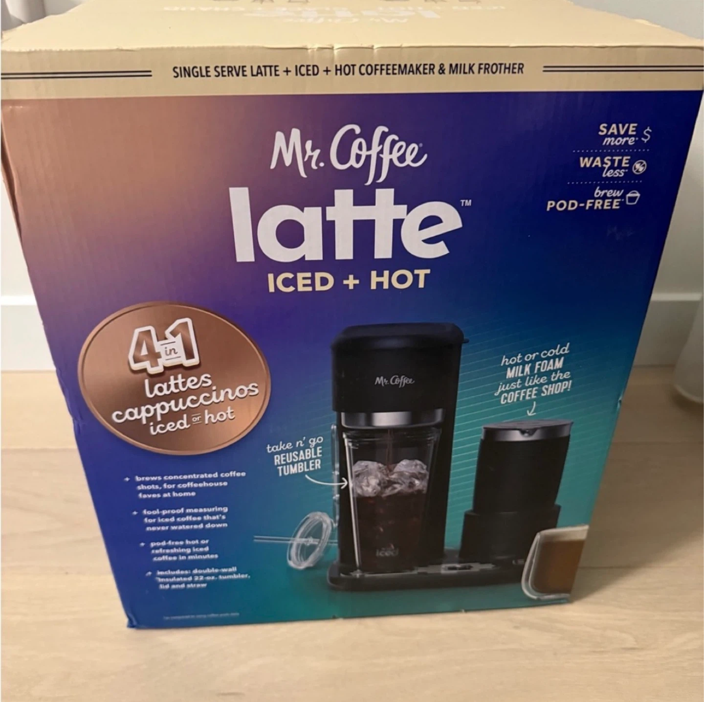 Brew 41 different lattes and cappuccinos, hot or iced! It brews concentrated coffee shots for coffeehouse-style drinks. Features pod-free brewing, a reusable tumbler, and a built-in milk frother for hot or cold foam. Includes a 22 oz. double-wall, insulated tumbler with lid and straw.