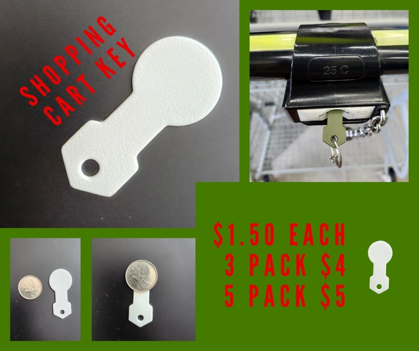 This shopping cart key is a handy tool to free up carts without needing a quarter. It's made of durable white plastic and is designed to fit standard cart locks. Easily attach it to your keychain for quick access.