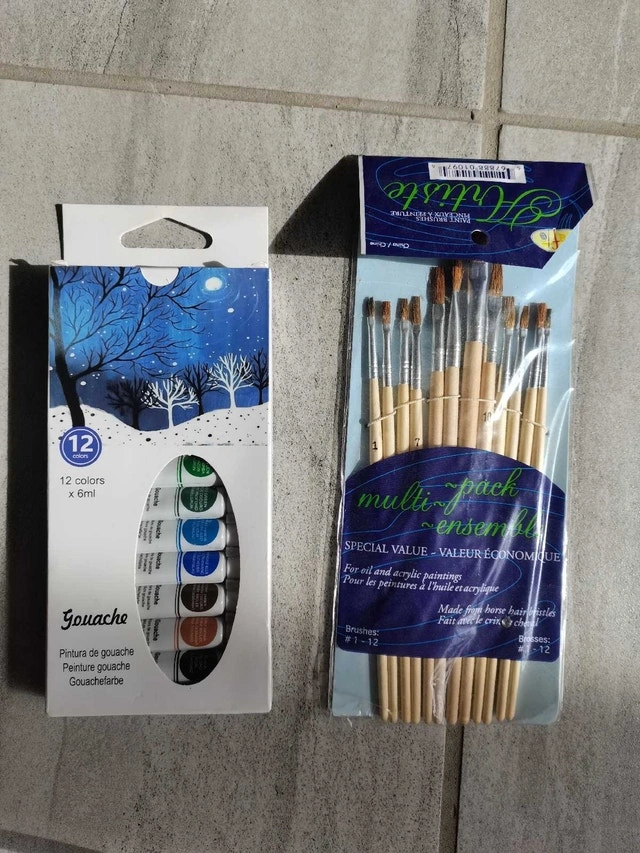 I am selling a new set of Artist's Loft Multi-Pack Ensemble brushes and a 12-colour Gouache paint set, perfect for any artist looking to start a new project or replenish their supplies. Pickup NW or near Chinook.