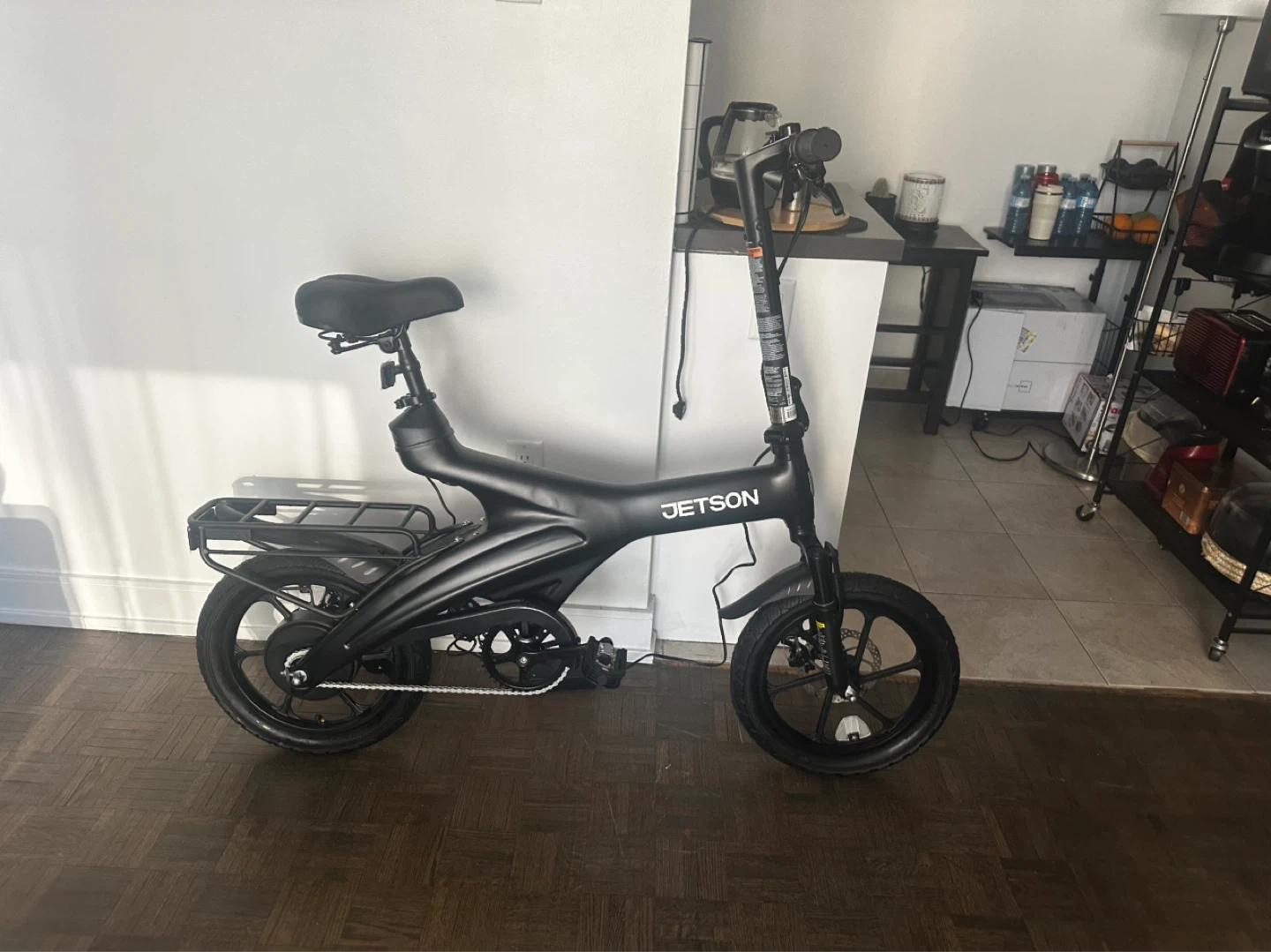 Ne brand JETSON CTG ELITE electric bike in black. It's a folding model with a rear rack and a premium LED screen. Includes smart card system for intelligent control.