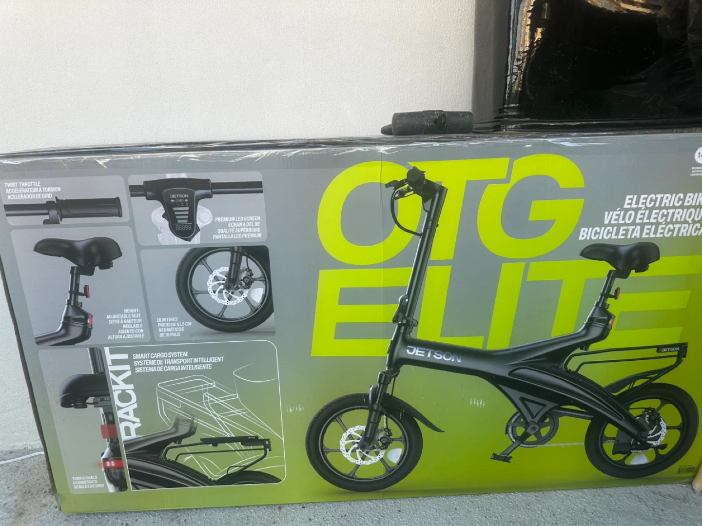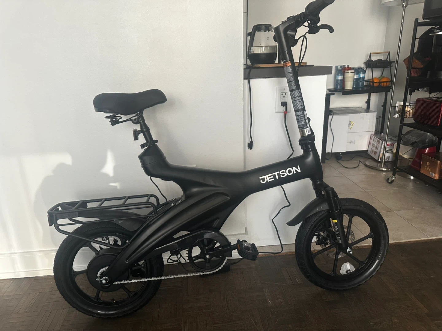 Ne brand JETSON CTG ELITE electric bike in black. It's a folding model with a rear rack and a premium LED screen. Includes smart card system for intelligent control.