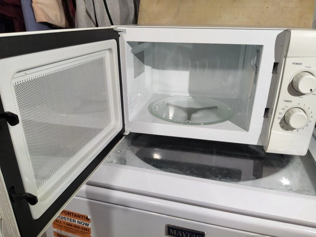 Nice working Sunbeam microwave, name brand, in great shape. Vintage, appears unused from storage. This quality appliance will last for years. Originally sold for $150. 7-day warranty included. Can show it operating at the time of purchase if you'd like. The microwave oven features six pre-set cooking options and ten different power levels for precise heating or defrosting. It also has an easy-to-read digital LED display clock and timer.