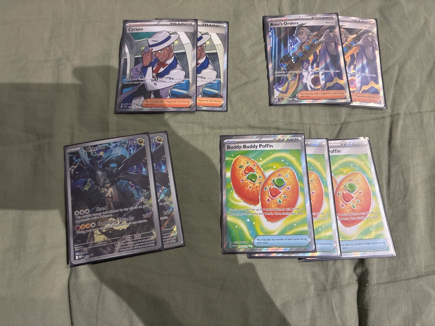 Bundle of various Pokemon trading cards including Buddy-Buddy Poffin, Boss's Orders, Zoroark EX, and Zorua cards. These cards are great for collectors and players. Add these to your Pokemon TCG collection today!