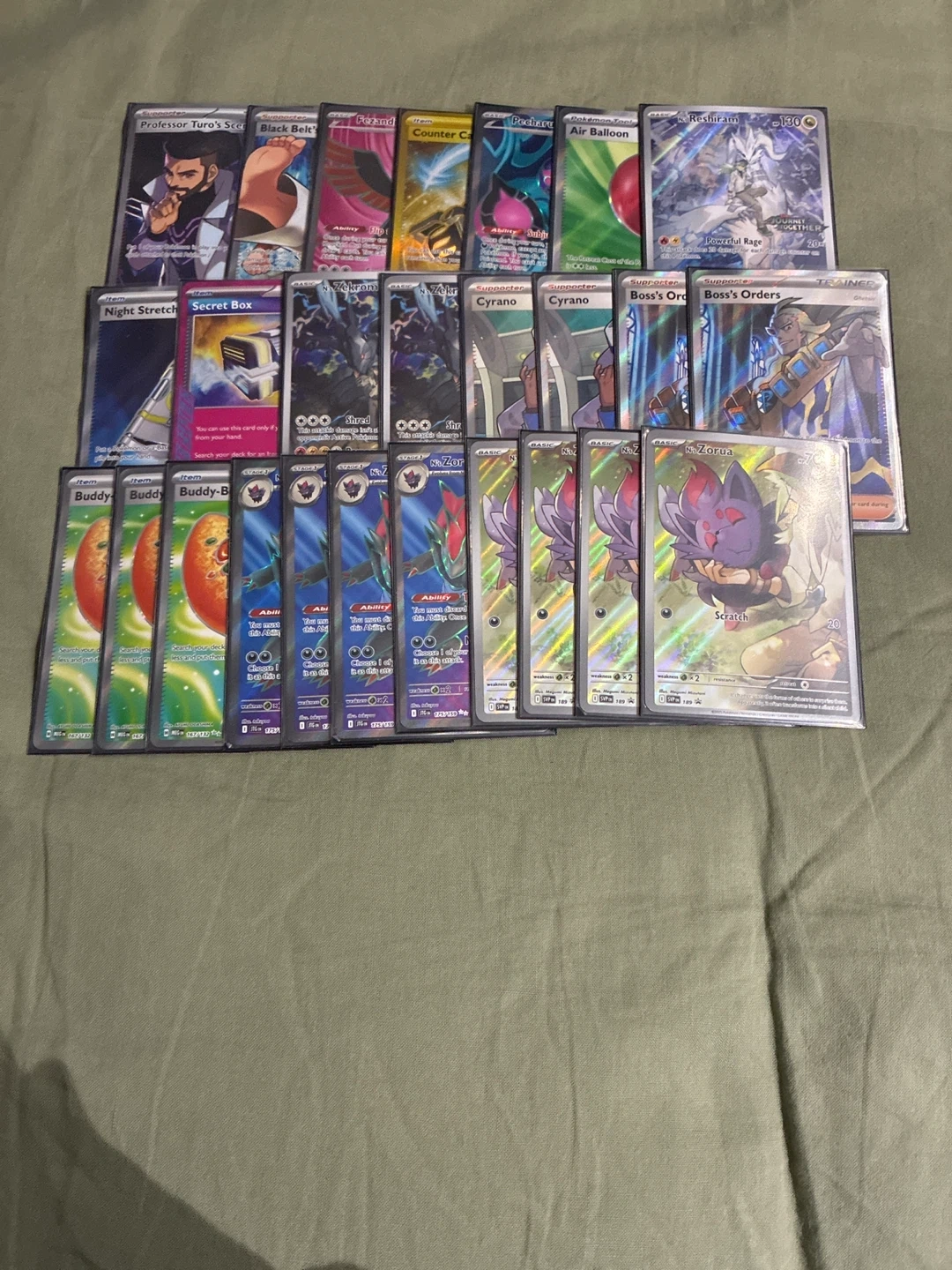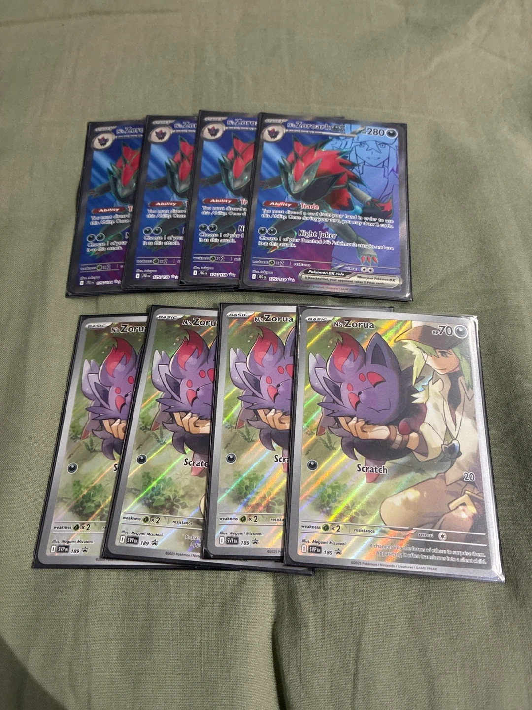 Bundle of various Pokemon trading cards including Buddy-Buddy Poffin, Boss's Orders, Zoroark EX, and Zorua cards. These cards are great for collectors and players. Add these to your Pokemon TCG collection today!
