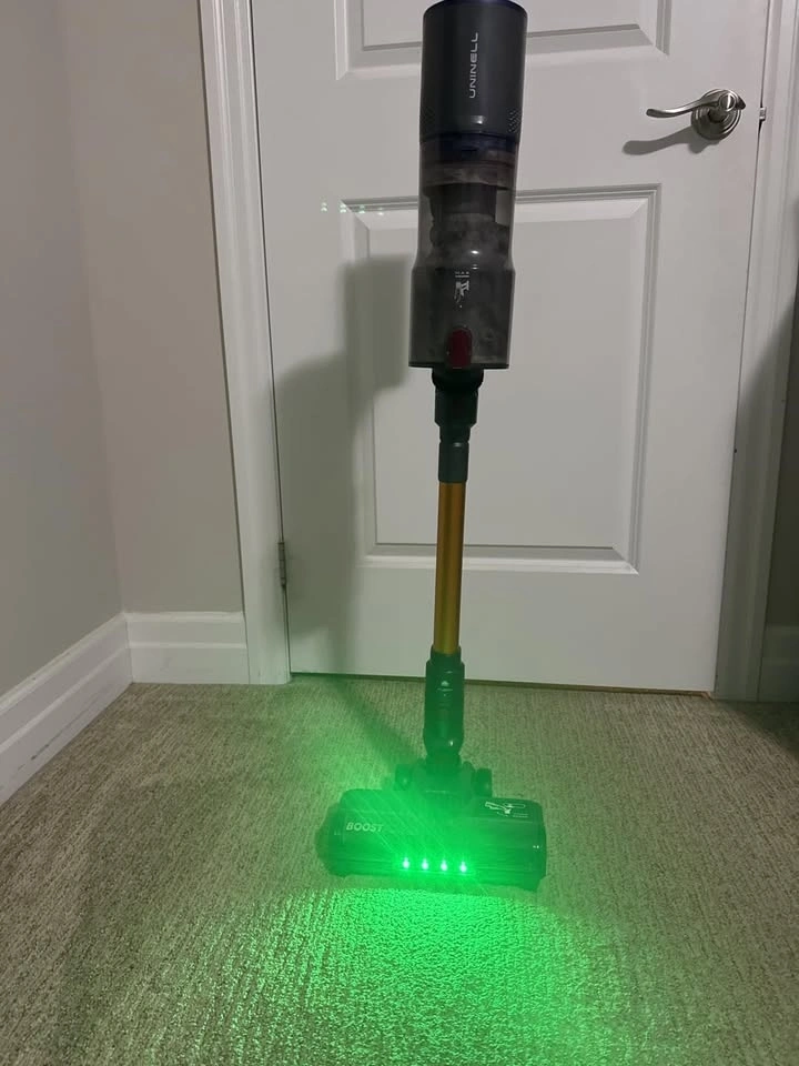 Pick up and Cash Only. Features: Siphon Feature, 1.6L Dust Cup, 45 dB Low Noise, 7.3 lbs Lightweight, 3 Multi-Function Tools, 48KPa Turbo Suction, 550W Brushless Motor, Max 65mins Runtime, 7 Multi-layer Filter, User-Friendly LED Display, V-Shaped Anti-Tangle Roller Brush. Auto-Boost: Guarantees a thorough clean of airduct, UV5 will have auto-boost suction for 3 seconds when turning off in hardfloor mode. 580W Brushless Motor & 50KPA Ultra-Strong Suction: Effortlessly picks up debris from floor gaps, pet hair, and litter from carpets and sofas. 70-Minute Long Battery Life: Cleans up to a 2,500-square-foot house on a single charge. Detachable battery design. Tangle-Free Roller Brush & LED Headlight: V-shaped roller brush reduces hair tangling by 95%. Four LED headlights on the floor brush. LED Touch Screen User Friendly & Efficient Filtration: Switch between Bare floor, Carpet and Turbo mode. Displays real-time information like battery life and suction mode. 7-stage filtration system. Self-Standing Multi-Functional Vacuum Cleaner: Can stand on its own. Adjustable telescopic rod and included multi-functional brush head for various cleaning scenarios. Instant switching to handheld mode.