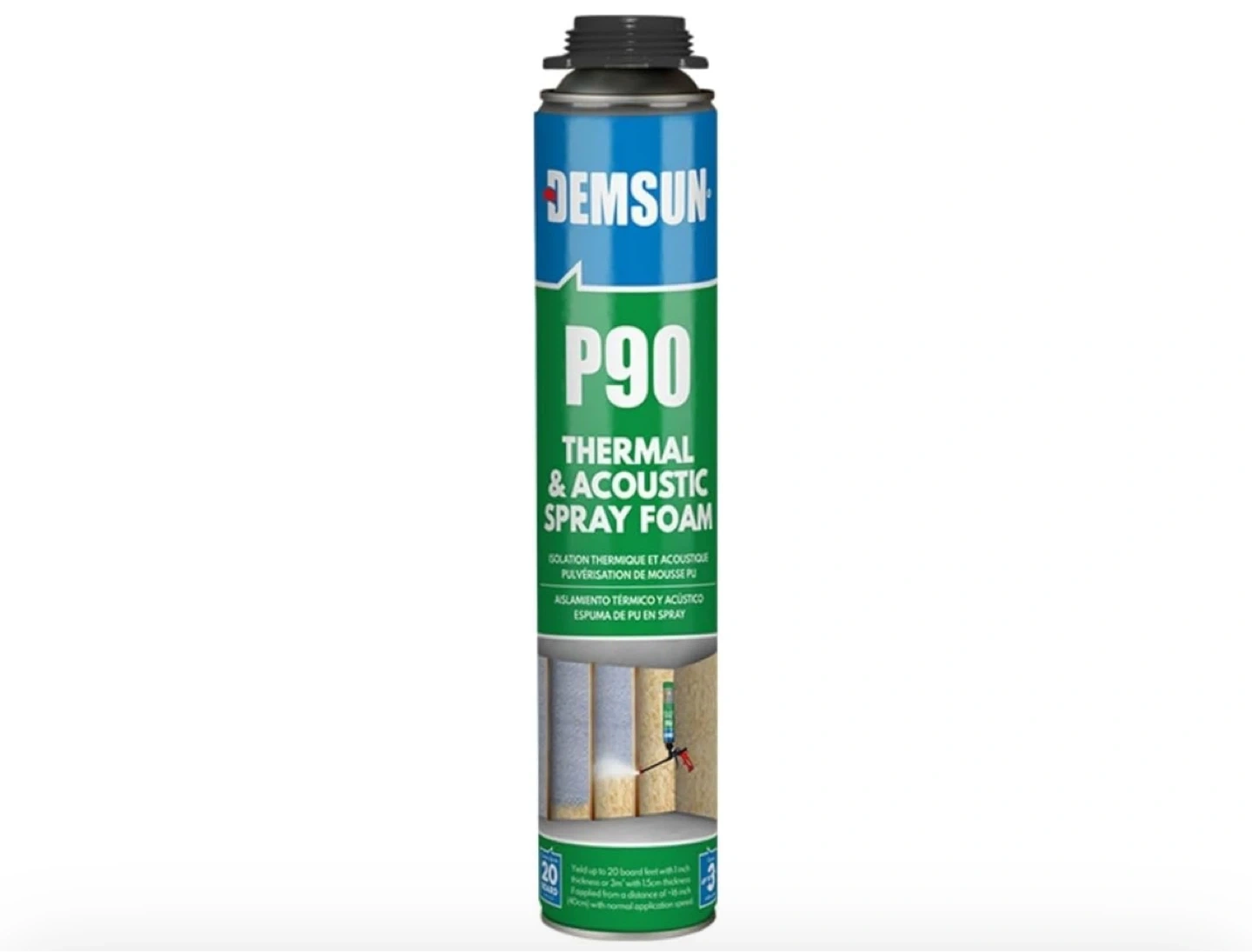 Demsun P90 thermal and acoustic spray foam for insulation projects. Yields up to 20 board feet with 1-inch thickness. Cures quickly and provides excellent thermal and acoustic insulation. This spray foam is great for sealing gaps and cracks. Made in Turkiye.