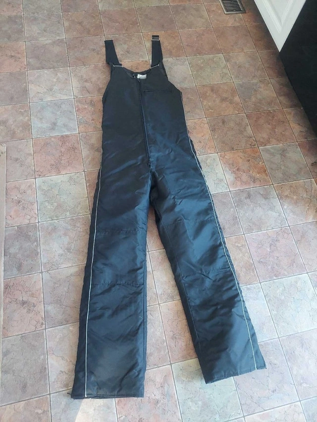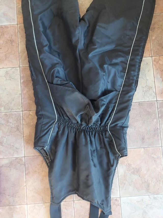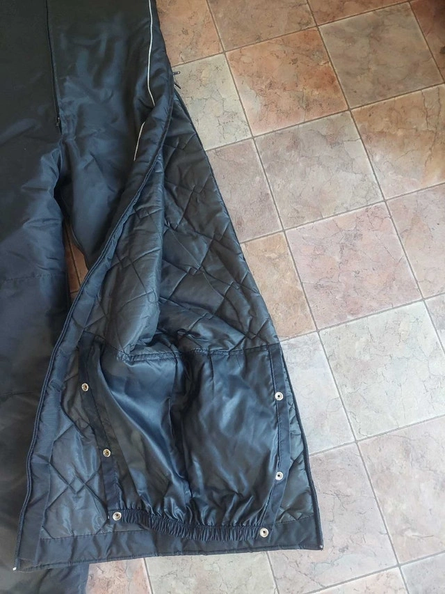Edco Style 9035 Medium Size (Unisex) Snowmobile Bib Pants. Gently used a few times for trail snowmobiling. CANADIAN MADE. Good for sledding, skiing, snowboarding, hiking, snowblowing, and other outdoor activities. Heavy-duty insulated for durability and protection against harsh weather. Seam-sealed to keep wind and snow out. Features a chest pocket, double-reinforced knees, adjustable suspenders, and complete side zippers to the hip for easy on/off over boots. Also has a front zipper, internal snow cuffs, back elastic for a better fit, and reflective tape for visibility. In excellent condition from a smoke-free home. Asking $60. Pick up near Birds Hill Park. May be able to meet up if planned. Lots of warmth and wear left in these like-new pants.