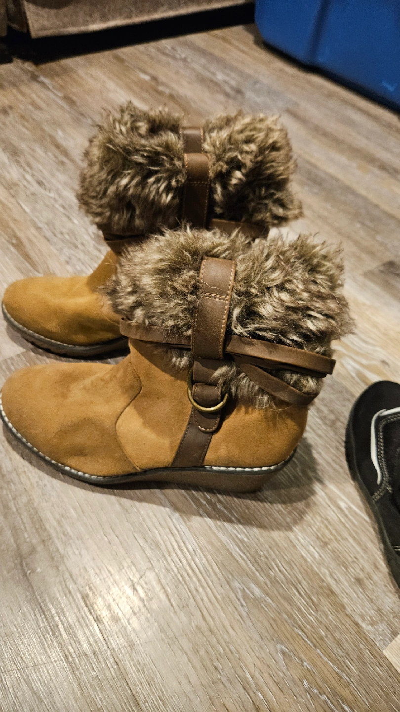 102Cozy up with these Isabel F boots! They're a size 7 and feature a stylish brown colour with a faux fur trim. These boots are perfect for adding a touch of warmth and style to your outfits during the colder months. In great condition and ready for a new home