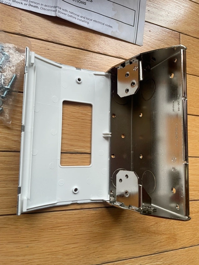 New Hubbell Wiring Systems RU100W tradeSELECT Metal Under Cabinet/Counter Power Distribution Slim Fit Box. These boxes provide a convenient, out-of-sight way to distribute power and voice/data. They comply with the NEC for kitchen receptacles, with placement not more than 20 inches above the counter surface. They can also be placed under counter islands, not lower than 15 inches from the surface. Custom configurable, accepts any Decorator style device. Mounting hardware included. Price firm. Pickup can be arranged in Brampton, Mississauga, Oakville, Burlington, Hamilton.