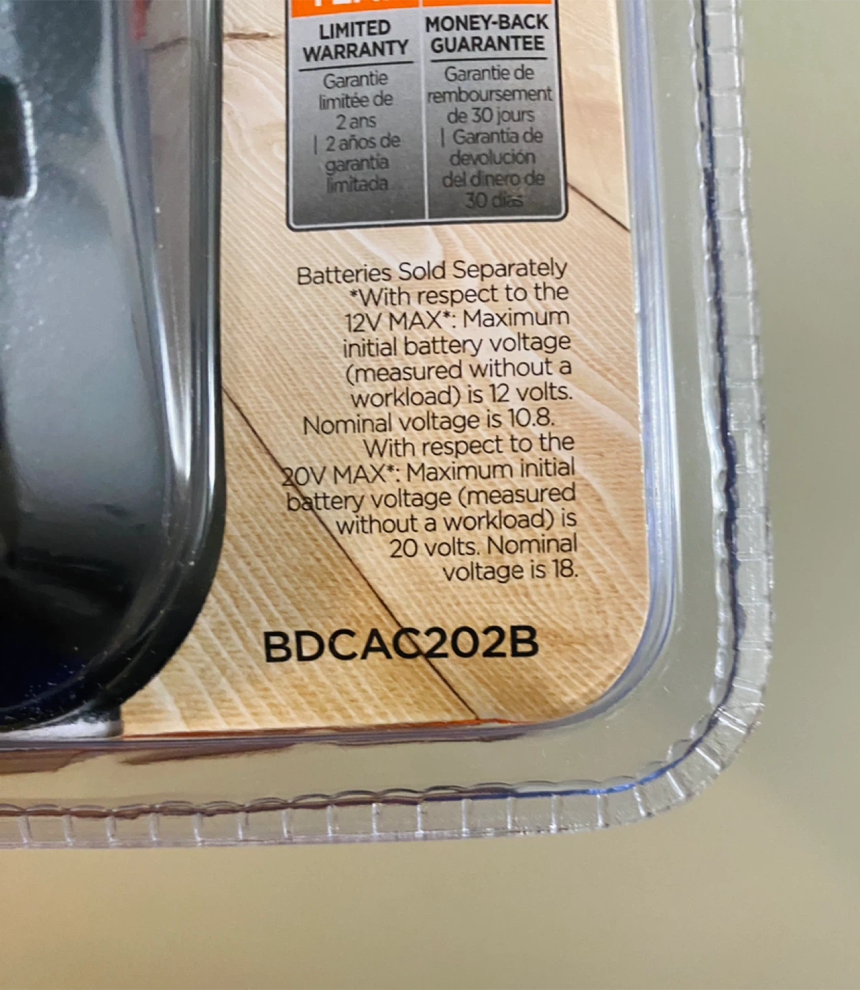 Model: BDCAC202B (found in front bottom right corner of packaging).
