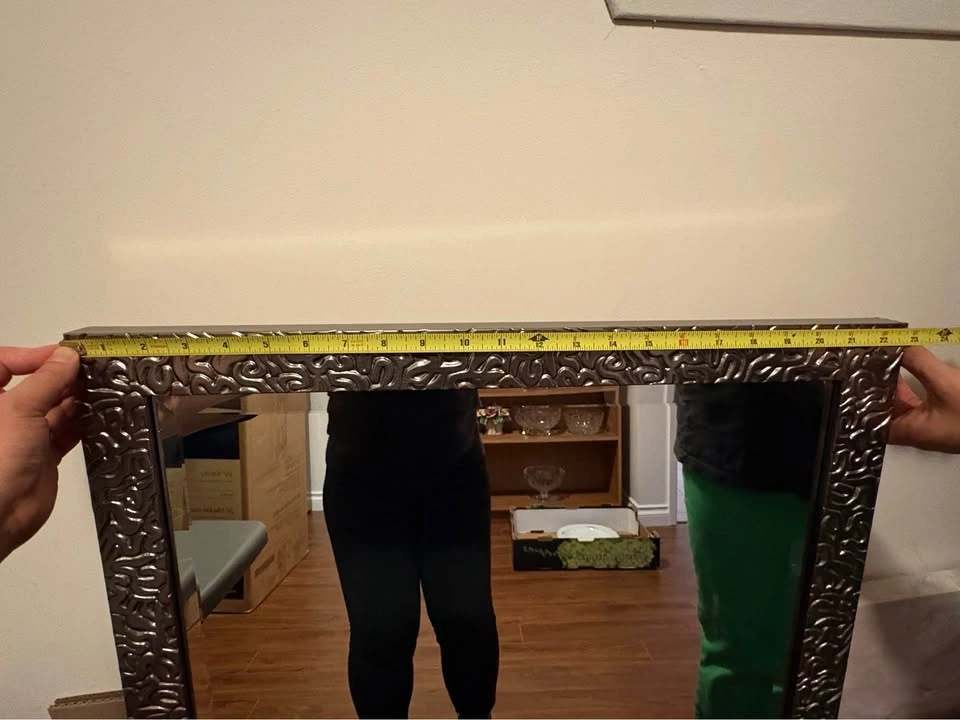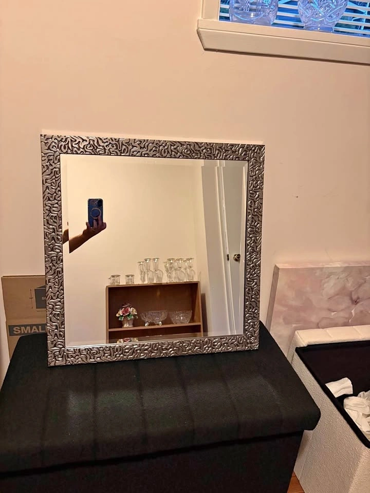 Buy & SellDecorative Square Mirror 23x23Decorative Square Mirror 23x23$25Stylish square mirror with a cool decorative silver frame. Measures 23x23 inches. Ready to hang with wire on back.WHERE TO MEETCheck LocationView MapSELLERverifiedAppleCentral City973 reviews0 chats·0 favorites·2 viewsSEND CHAT TO SELLERHi Apple! I’m interested in your listing.Hi Apple! I’m interested in your listing.Get the Karrot app to chatSign In to chat