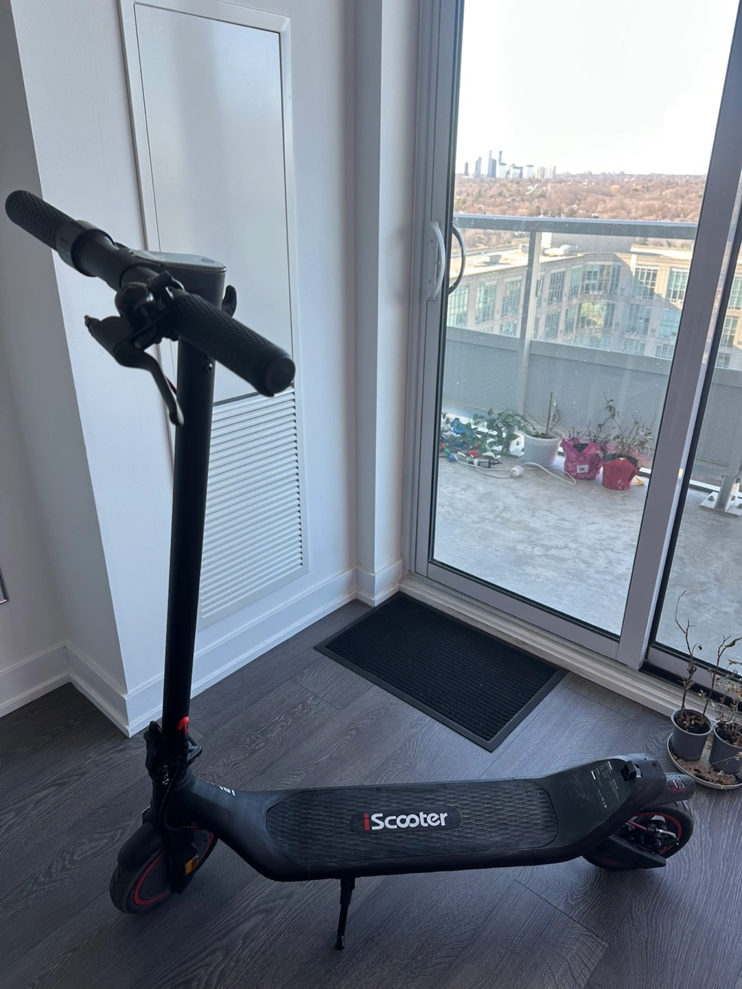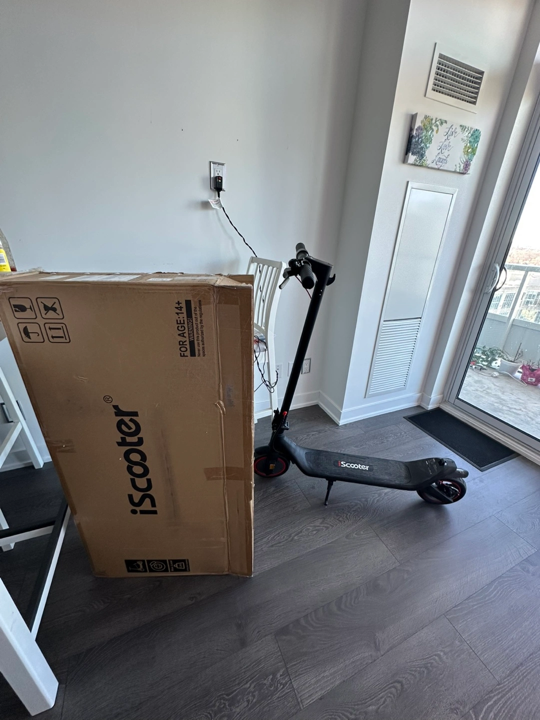 Foldable electric scooter. Amazon price -380$. Features 500W peak motor, 25/20 km max range, 8.5" tire, double braking system. It’s almost new, Used only 2-3 days. including taxes, but I can sell at just 250$. It comes with its original box and packing, and a charger included. It’s cool to enjoy a ride in summers or you can go for a quick grocery shopping or commute to work if it is closer to your place.