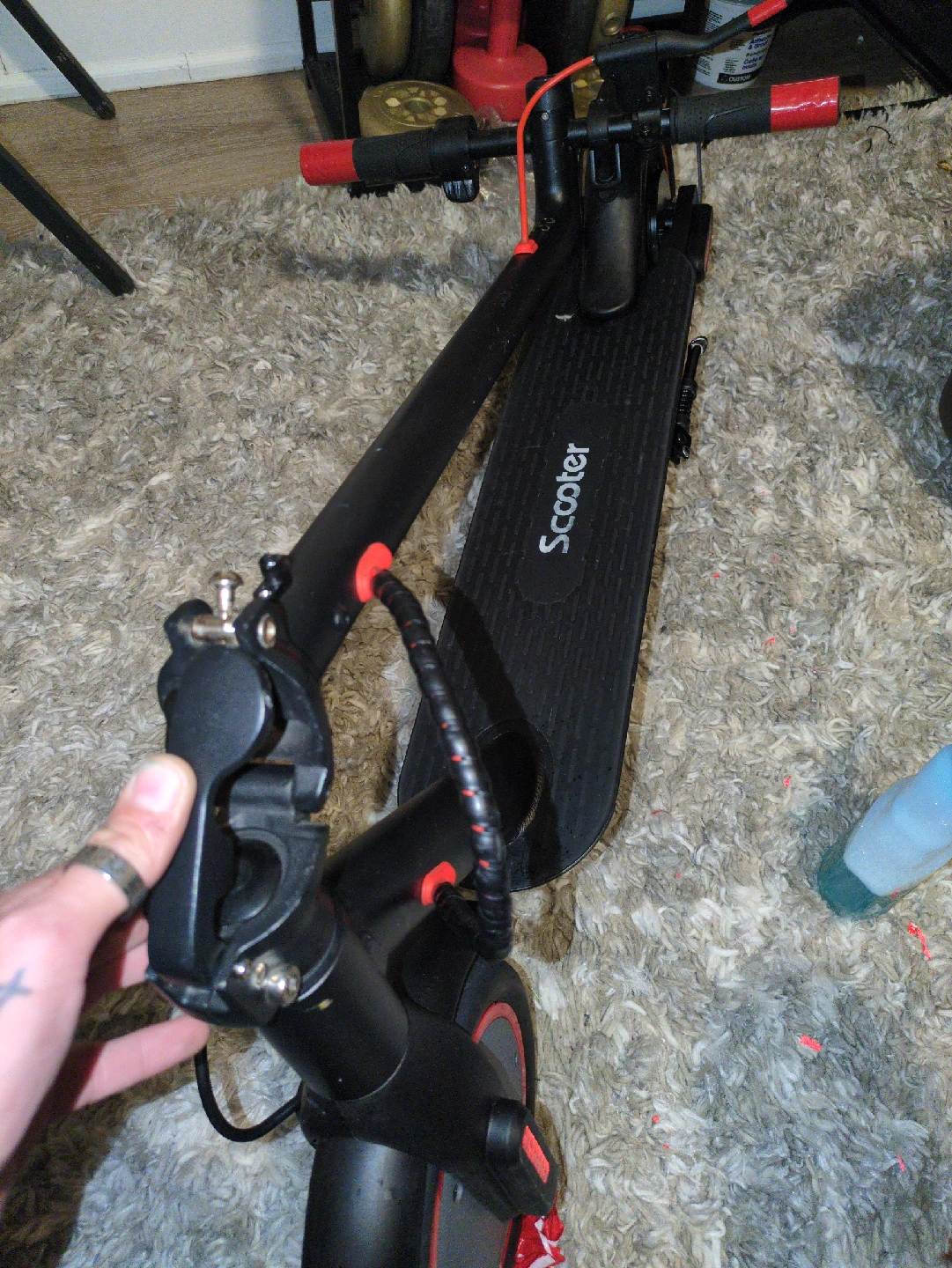 Selling an iScooter I8 electric scooter in black and red! It's in good condition and ready for some fun rides around town. The scooter features a digital display showing speed and other useful information. three speeds eco mode drive mode in sport mode 30 km Max an hour travels really far and is in great condition. barely used it. paid $599 beginning of summer Great for commuting or just enjoying the outdoors 350 your best offer