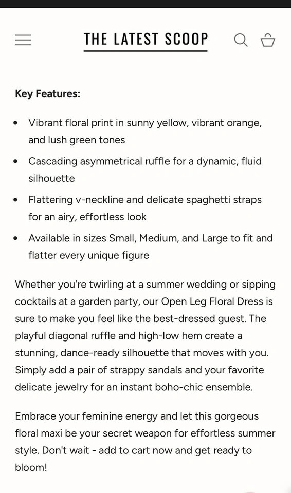 Buy & SellScoop Floral Maxi DressScoop Floral Maxi Dress$40Beautiful floral open leg maxi dress by Dress Forum from Scoop. Size S.WHERE TO MEETCheck LocationView MapSELLERSierraKitsilano201 review0 chats·0 favorites·15 viewsSEND CHAT TO SELLERHi Sierra! I’m interested in your listing.Hi Sierra! I’m interested in your listing.Get the Karrot app to chatSign In to chat