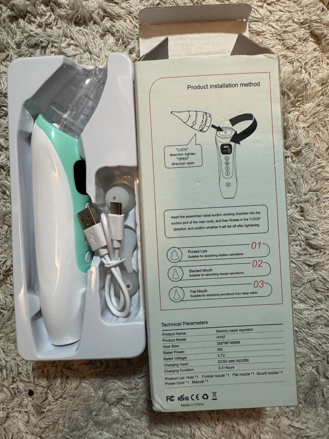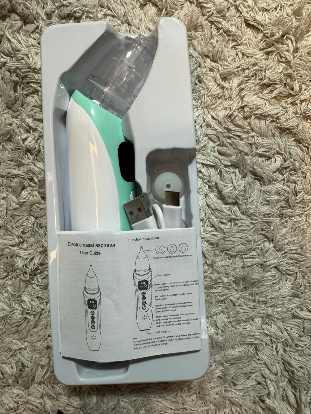 Selling a Household electric nasal aspirator. It comes with the box and all included components: