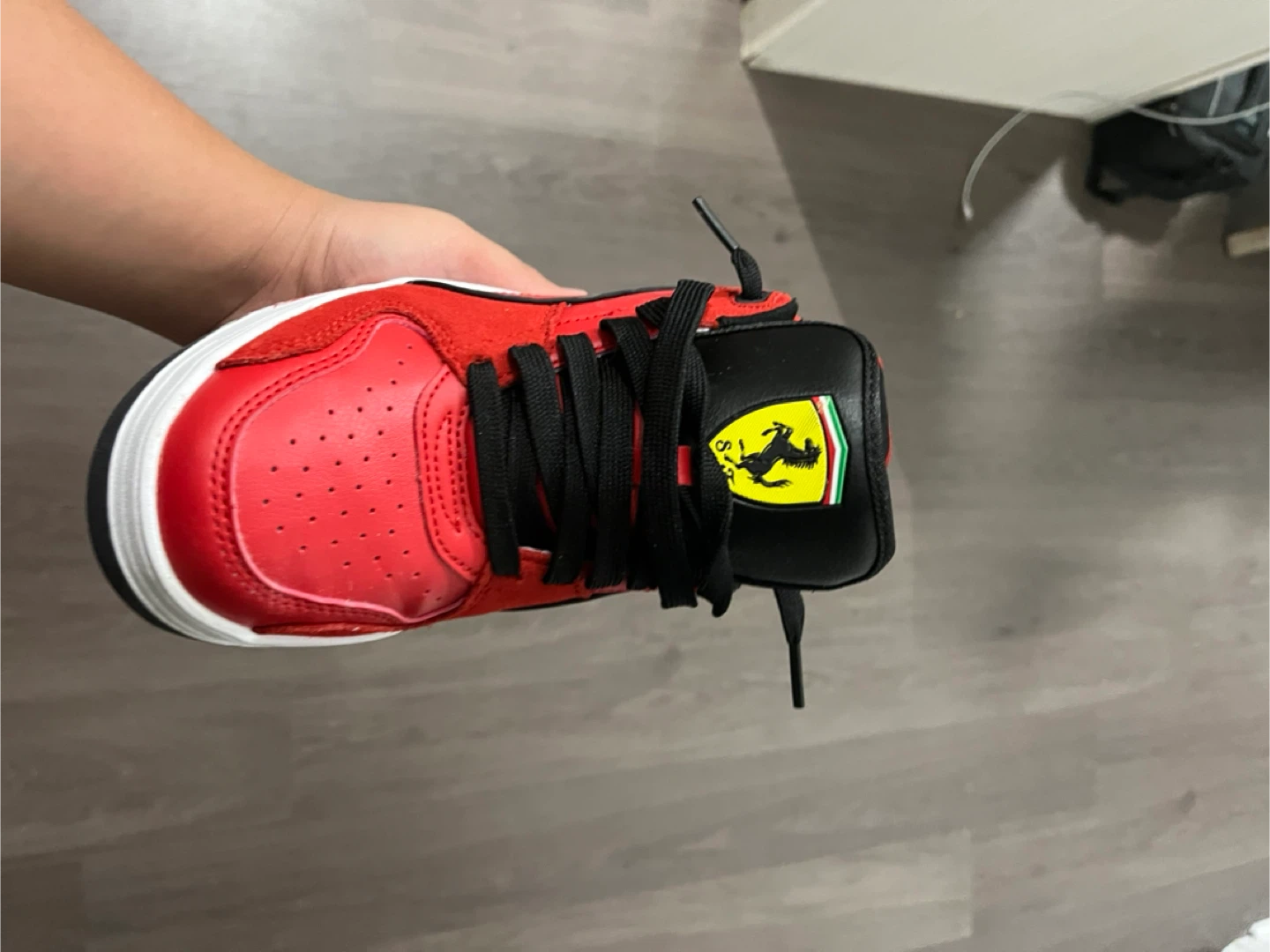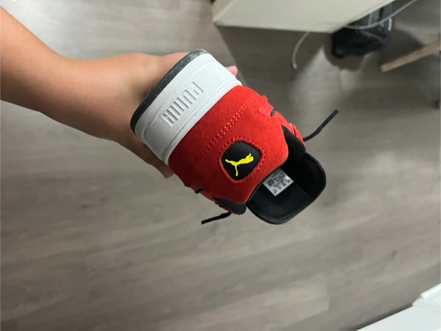 Puma x Ferrari motorsport sneakers in a vibrant red colour. These shoes are a size US 7.5 (EUR 40, UK 6.5).