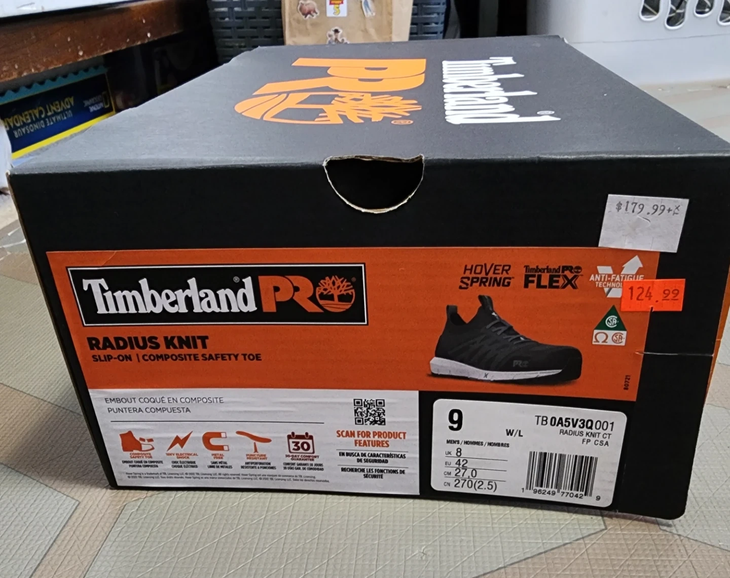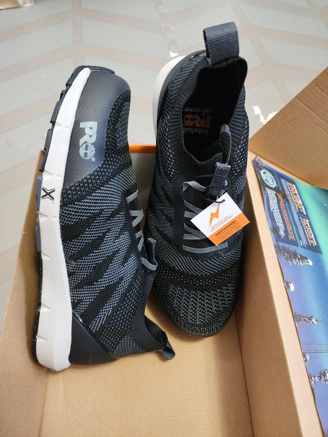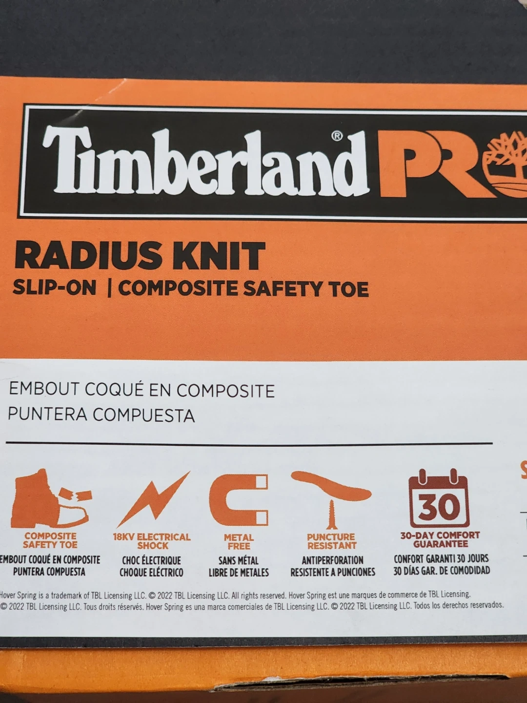 New. Safety Shoes Timberland Pro Radius Knit slip-on. Composite safety toe, 18kV electrical shock protection. Men's size 9 W/L, UK 7, EUR 42, 27.0 CM.