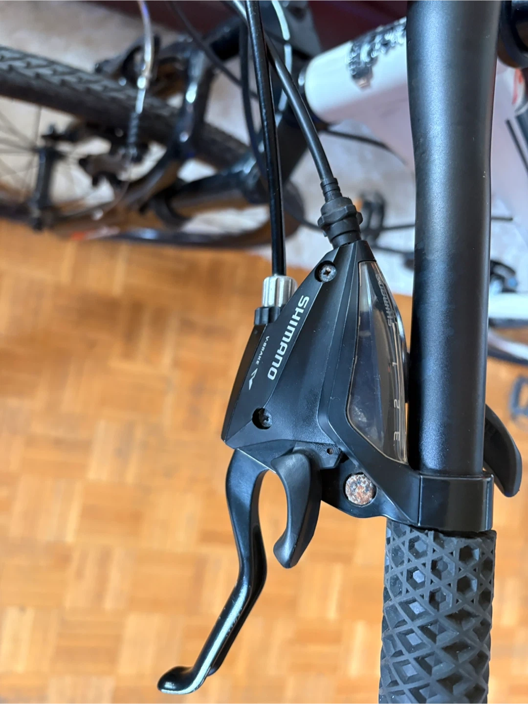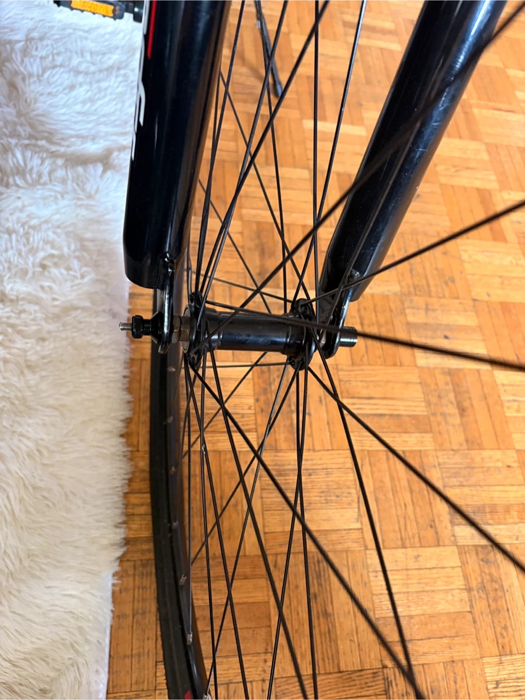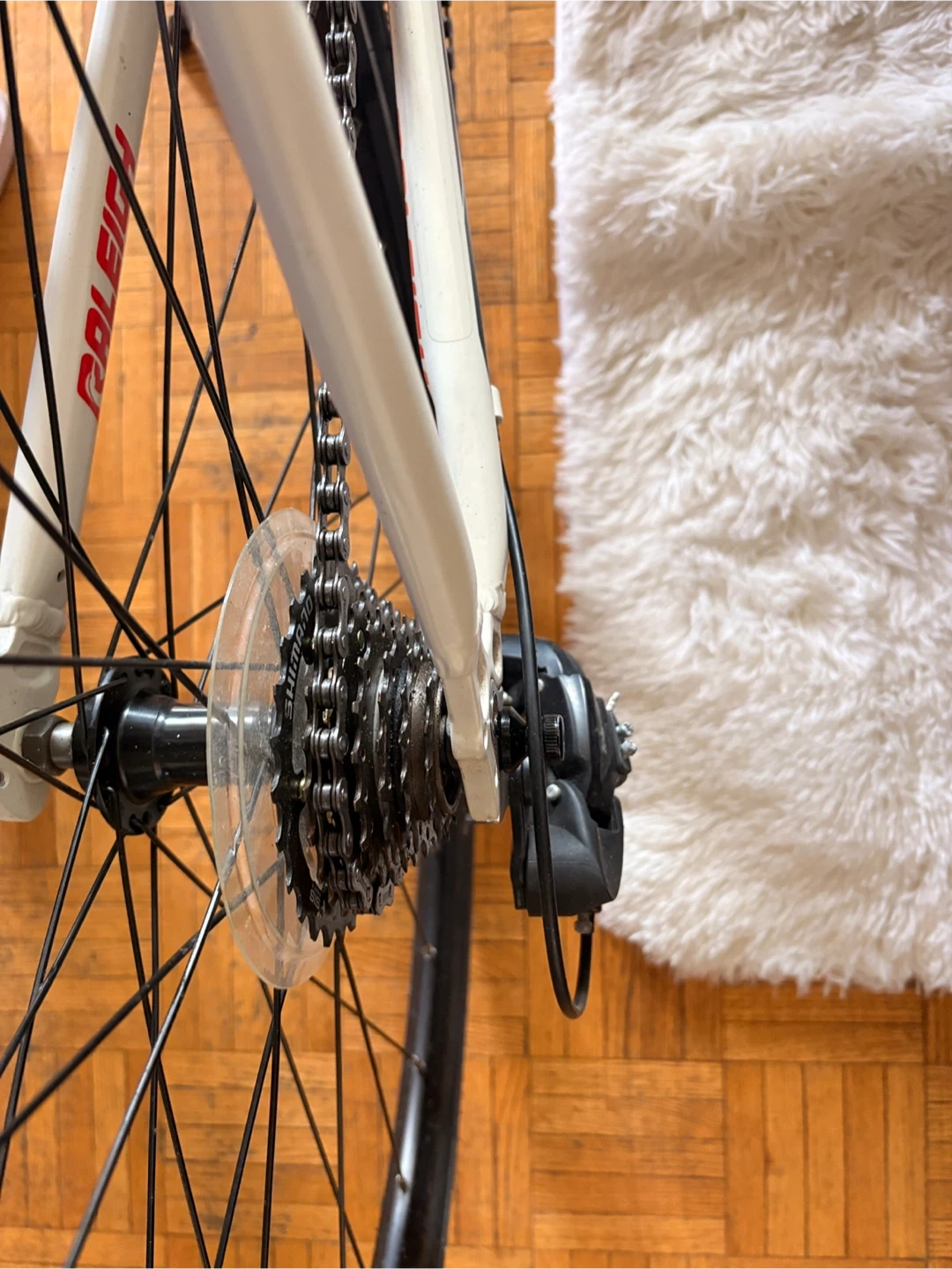 Raleigh Overtake hybrid bike in white. Aluminum alloy frame with Shimano components. Perfect for commuting or recreational riding! It has a medium size frame