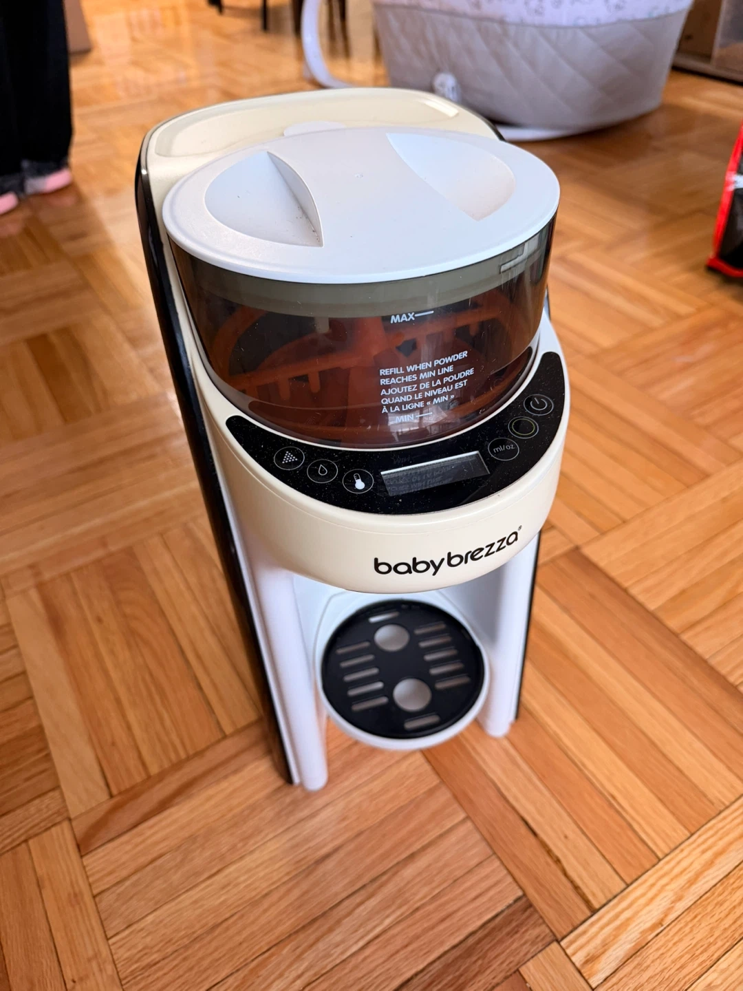 Baby Brezza Formula Pro Advanced formula dispenser. Automatically makes a warm bottle. Dispenses formula and water in the right consistency. Easy to use and clean!