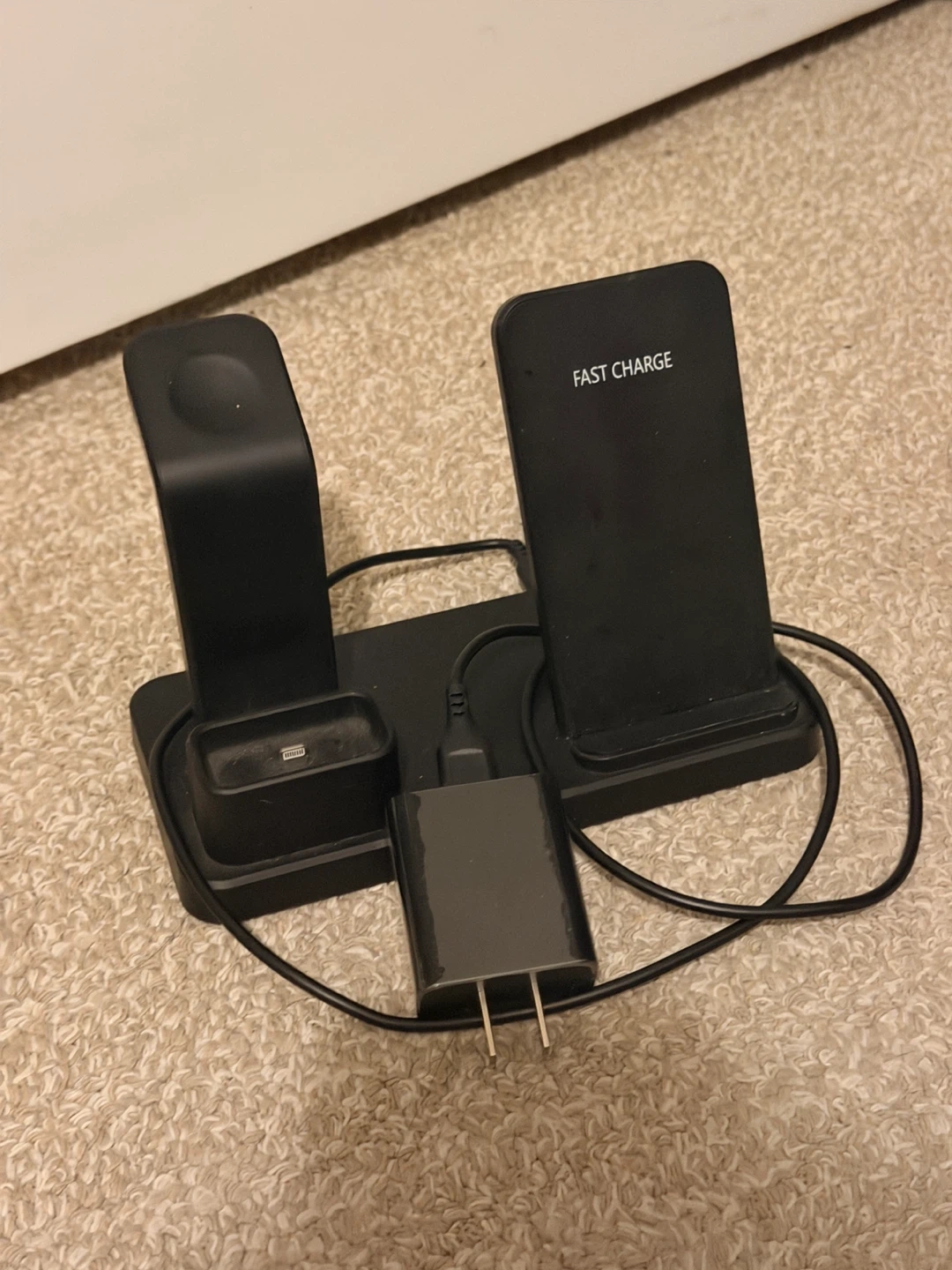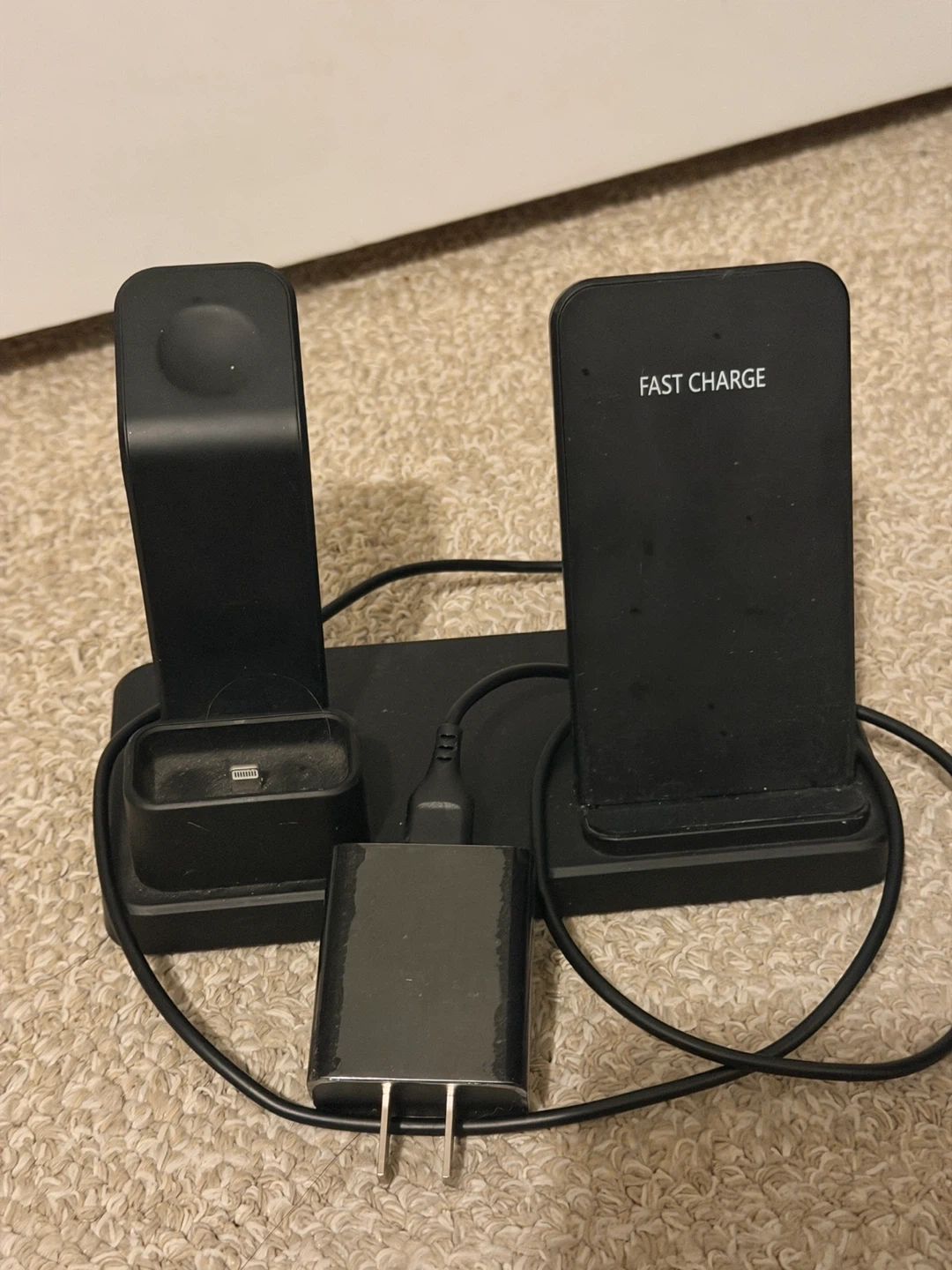 Buy & Sell3-in-1 Wireless Charging Station with Fast Charge3-in-1 Wireless Charging Station with Fast Charge$24Charge your iPhone, Apple Watch, and AirPods simultaneously. This black charging stand supports fast charging. Includes charging adapter and cable.ConditionLike newWHERE TO MEETCheck LocationView MapSELLERverifiedRojLower Capilano Marine600 reviews0 chats·0 favorites·10 viewsSEND CHAT TO SELLERHi Roj! I’m interested in your listing.Hi Roj! I’m interested in your listing.Get the Karrot app to chatSign In to chat