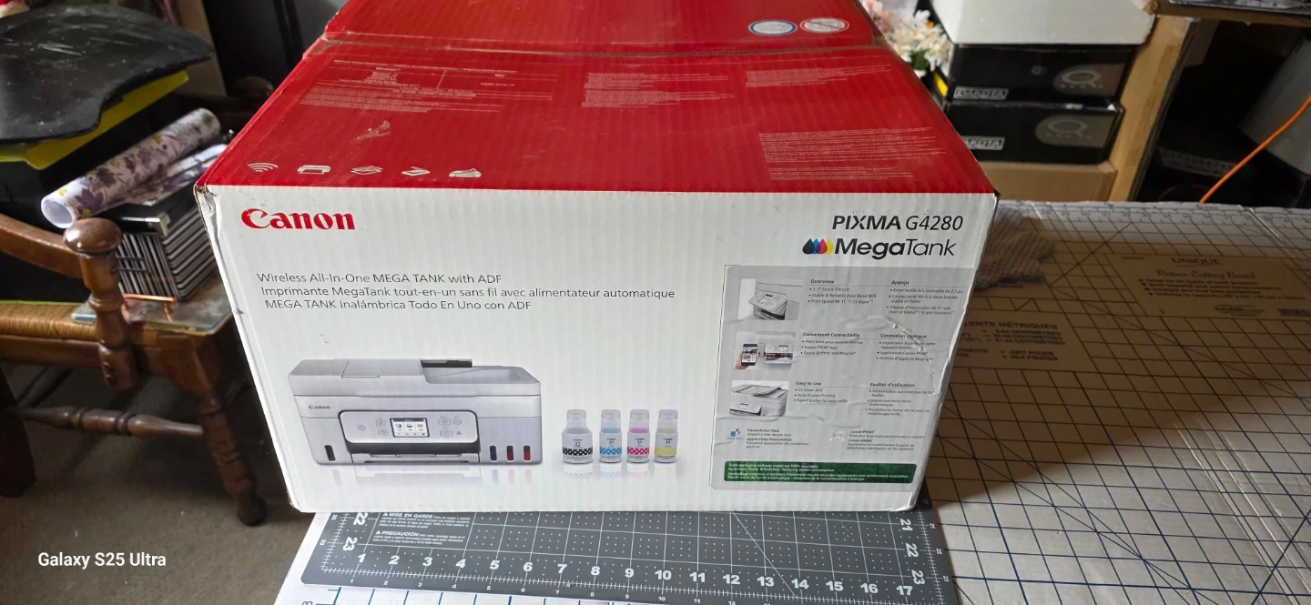 Canon PIXMA G4280 MegaTank All-In-One wireless printer. It's a compact unit with ADF functionality. Includes MegaTank ink bottles for high-volume printing. Brand new in box, never opened.