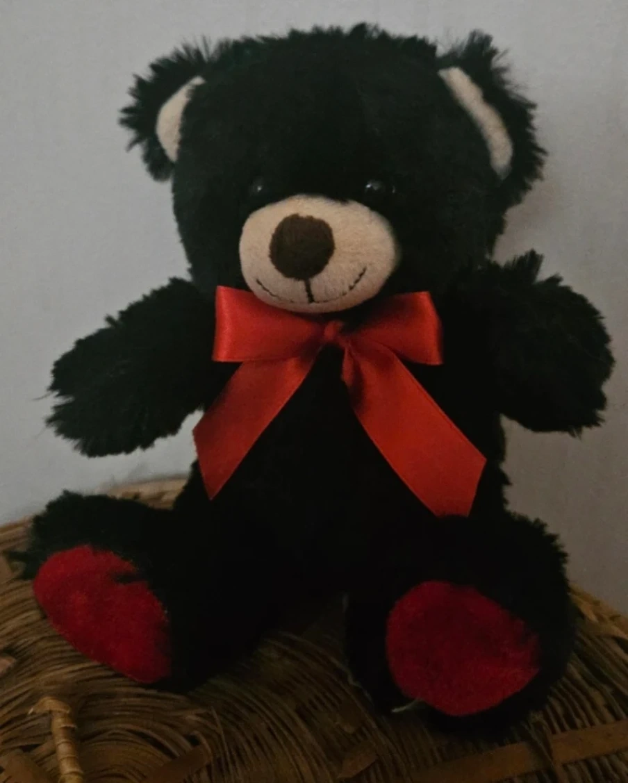 Black Teddy Bear with Red Bow