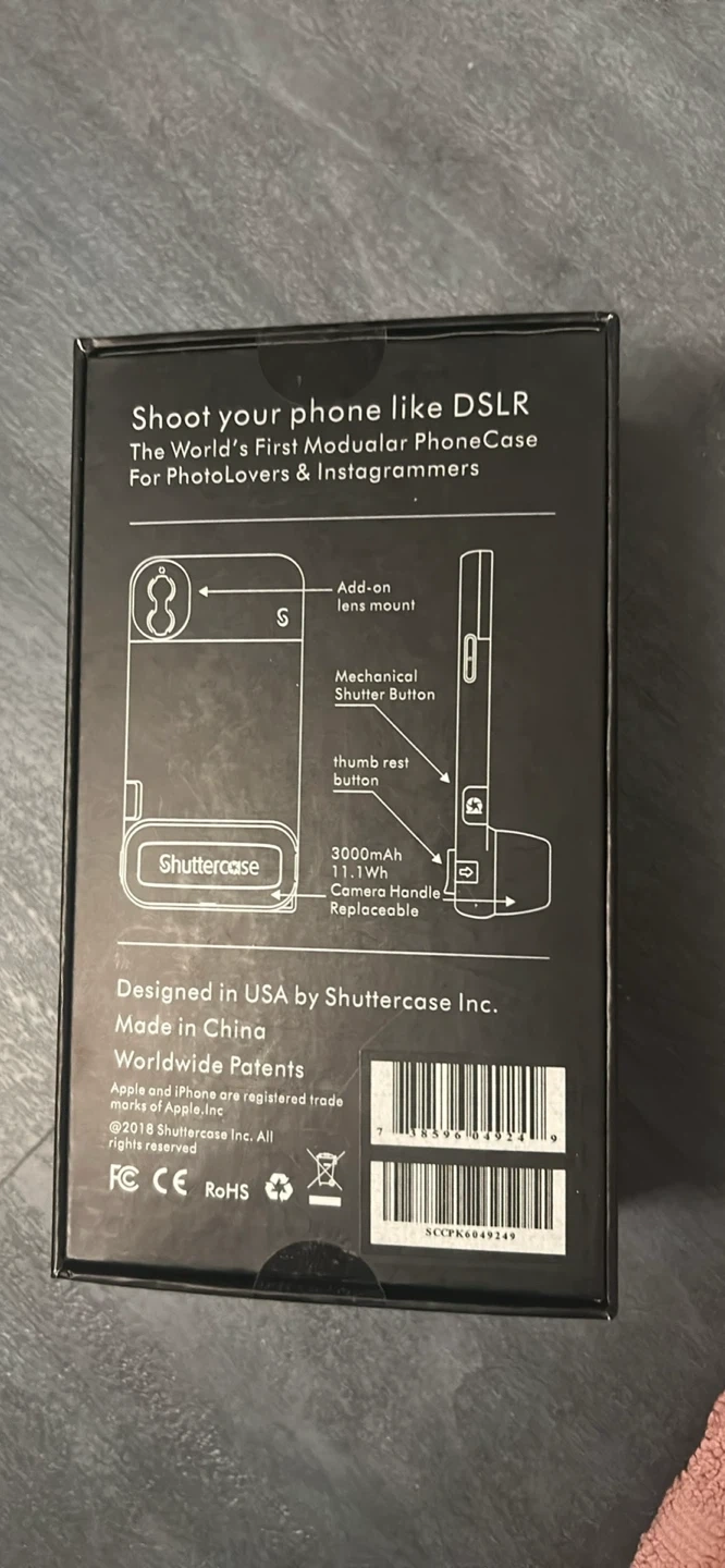 Selling a brand new Shuttercase Pro Camera Handle, still in its original box! It's designed for iPhone, 7 Plus, and 8 Plus models. This case lets you shoot like a DSLR with its unique mechanical shutter button. It also features an embedded 3000mAh power bank, so you can keep your phone charged while you're out snapping photos. The box includes the camera handle itself