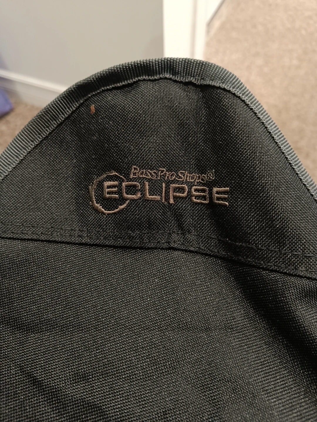 This is a compact, portable folding tripod stool from Bass Pro Shops' Eclipse line. It's made with a durable fabric seat and a sturdy metal frame. It's handy for camping, fishing, or any outdoor activity where you need a quick seat!