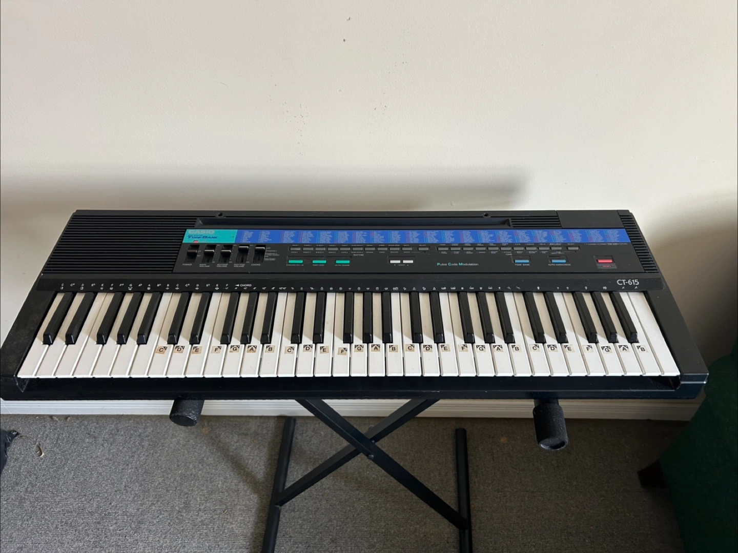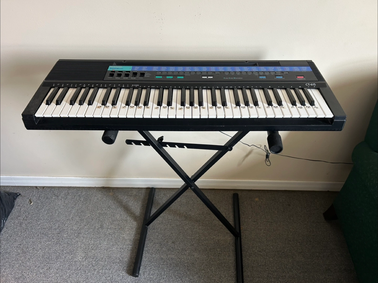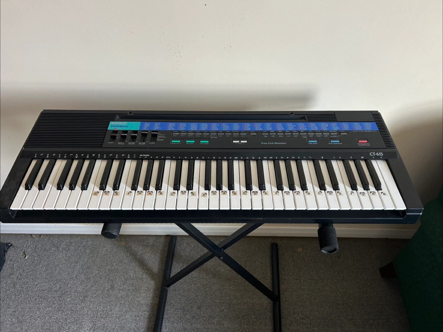 Selling a Casio CT-615 keyboard. It's in great condition and comes with a stand. Perfect for beginners or anyone looking for a simple keyboard to play around with