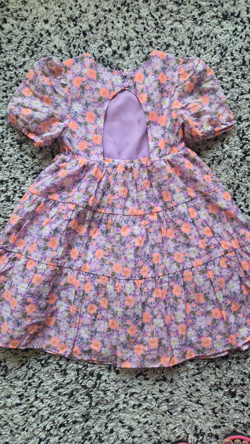 This adorable Cat & Jack dress features a vibrant floral print with puff sleeves. It has a tiered skirt and a keyhole back closure. Made with a lightweight fabric for comfortable wear.