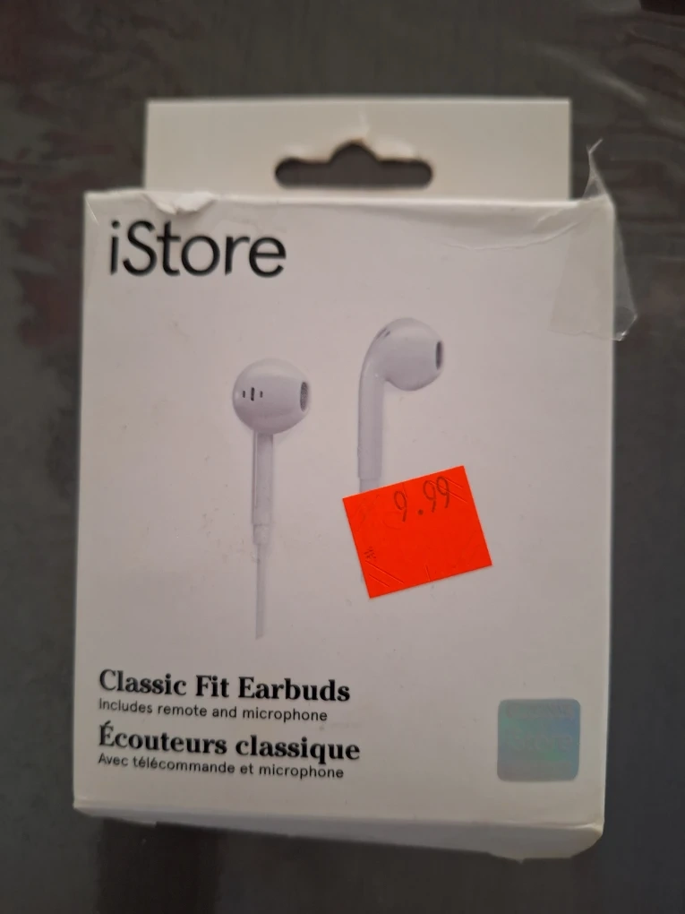 132Selling a brand new pair of iStore Classic Fit Earbuds! They come in the original box and include a remote and microphone. The earbuds feature quality sound performance, a scratch-resistant housing, and a flat tangle-free cable. Also includes silicone non-slip earbud tips