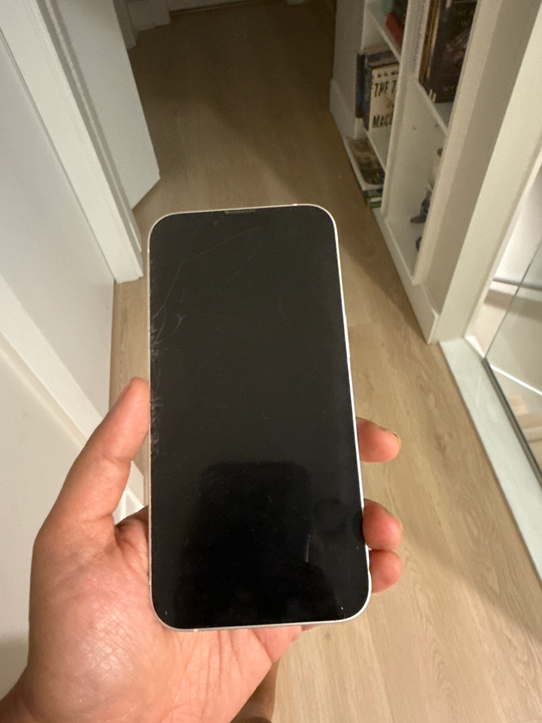 Selling fully functional an iPhone 14 in white. Please note that the screen is cracked, as shown in the pictures. Still functions normally but has visible damage.