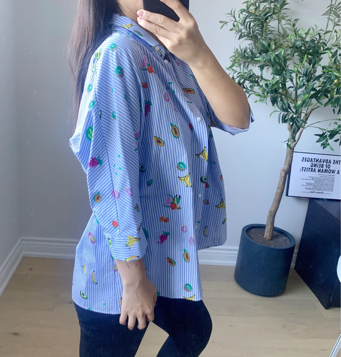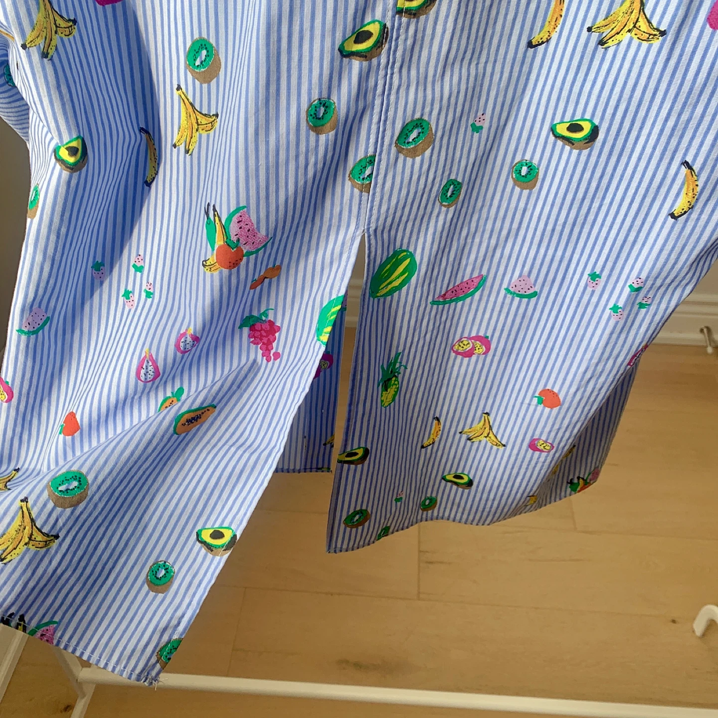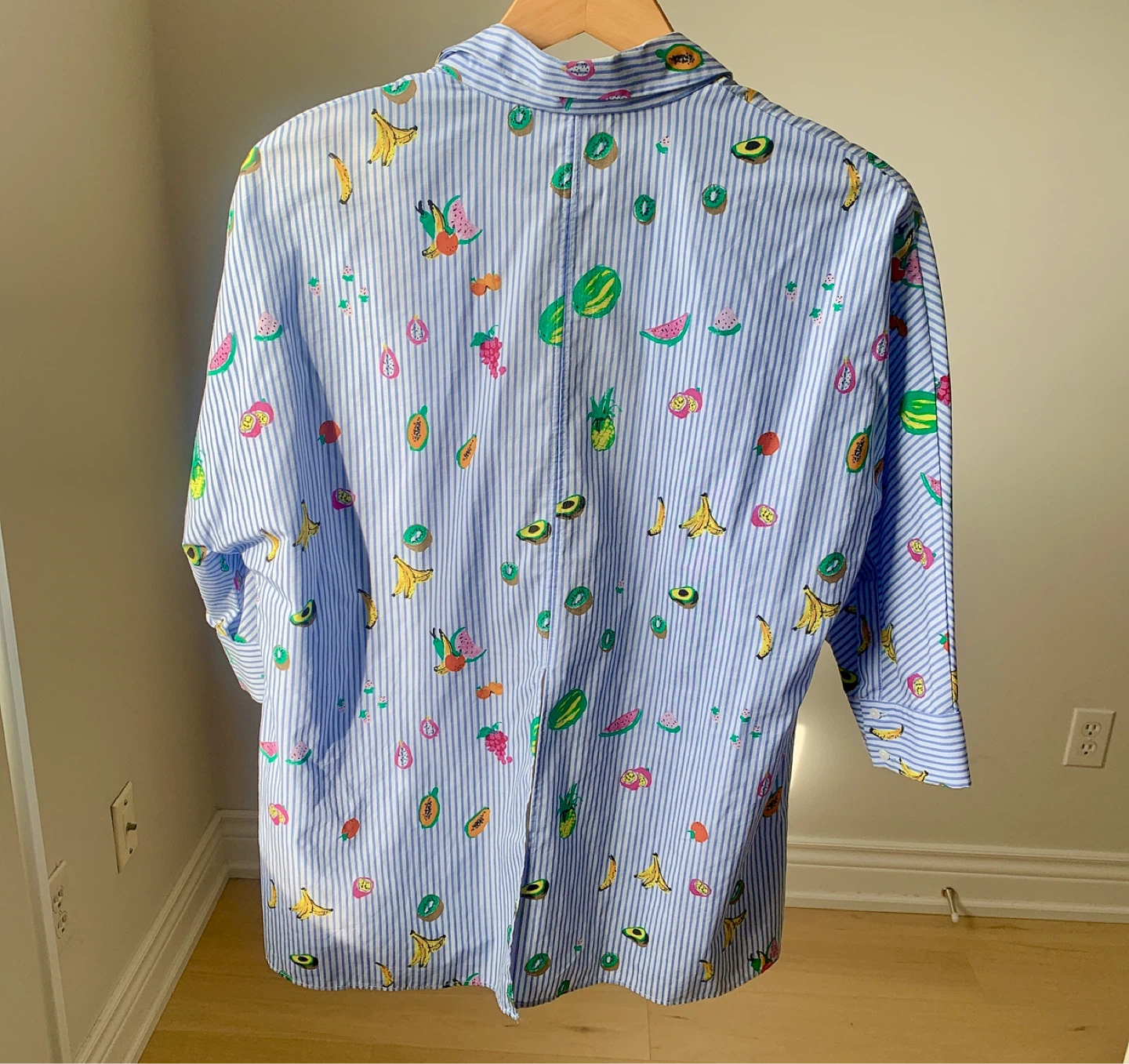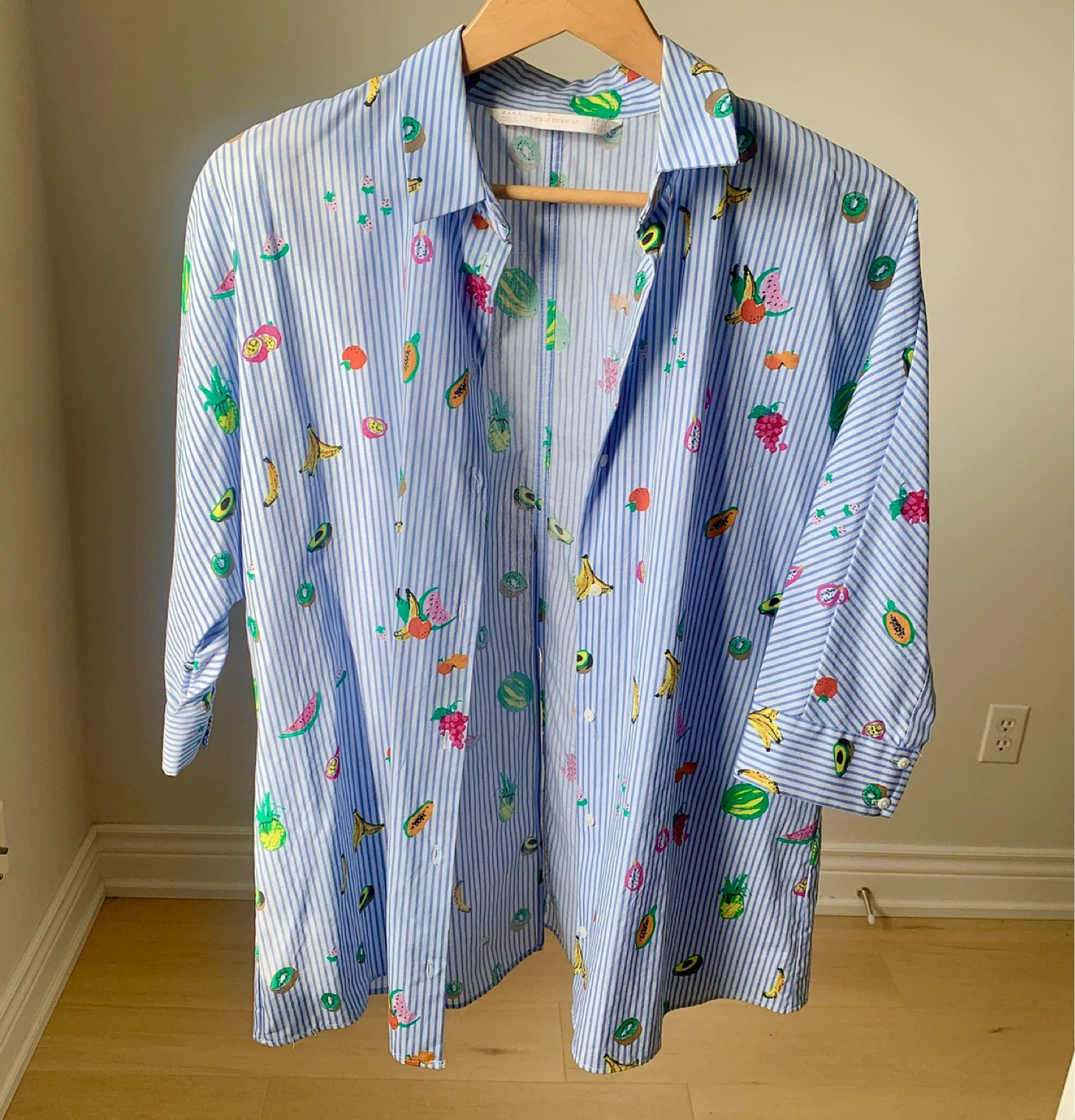 ZARA Oversized Blue & White Striped Fruit Print Shirt – XS