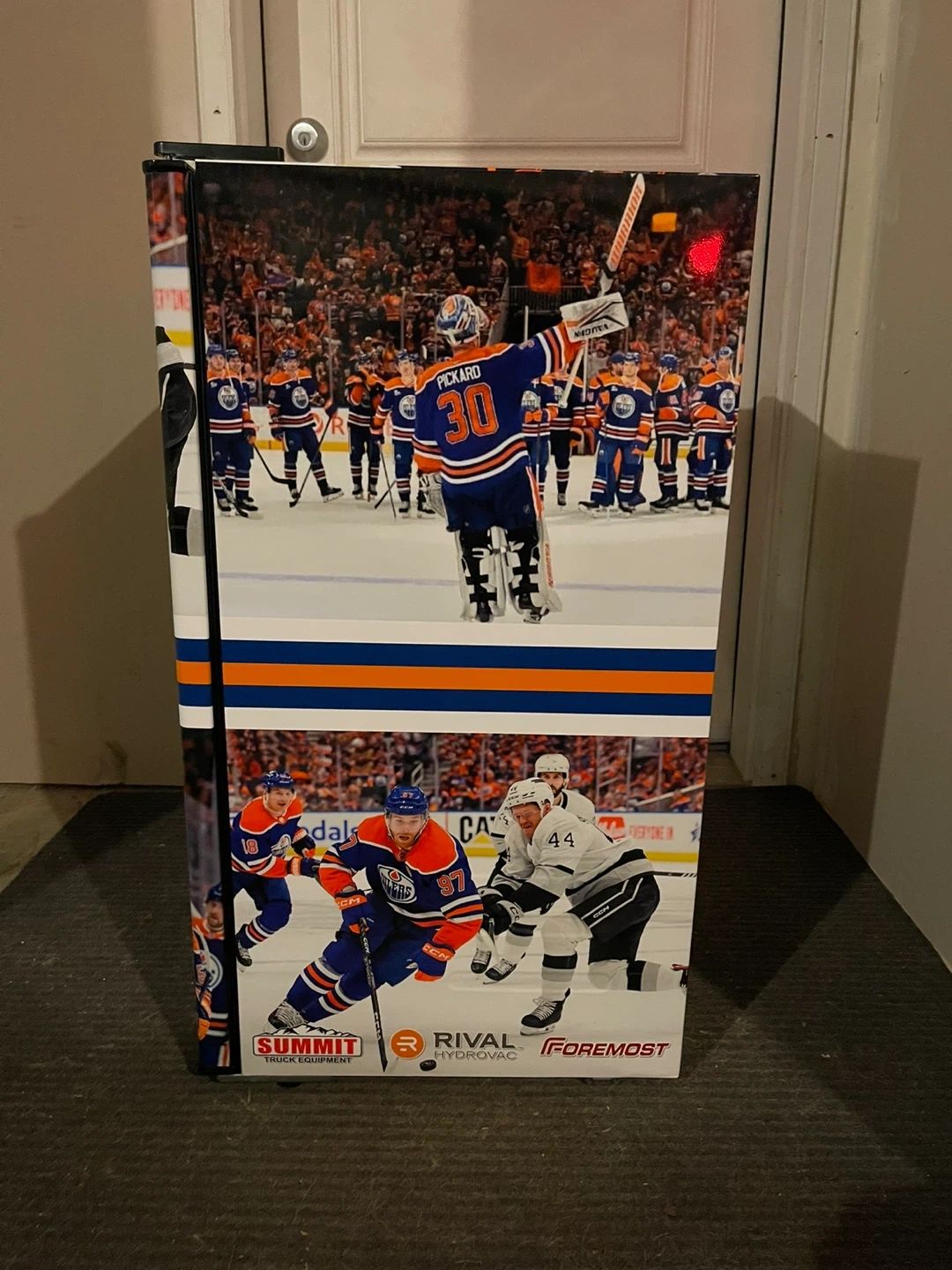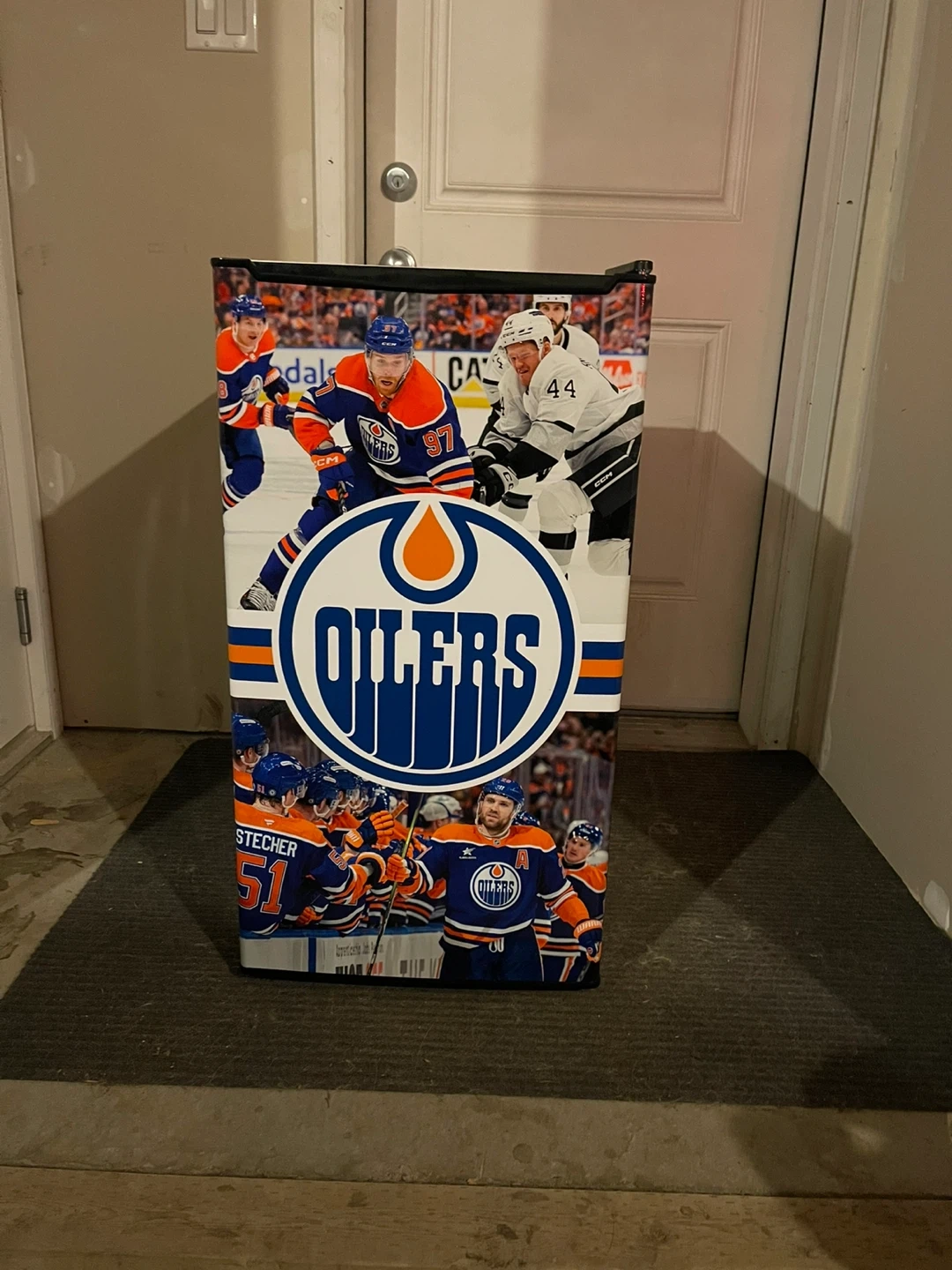 Selling a Hamilton Beach mini fridge decked out with Edmonton Oilers graphics! It's in great shape and perfect for a dorm room, office, or games room