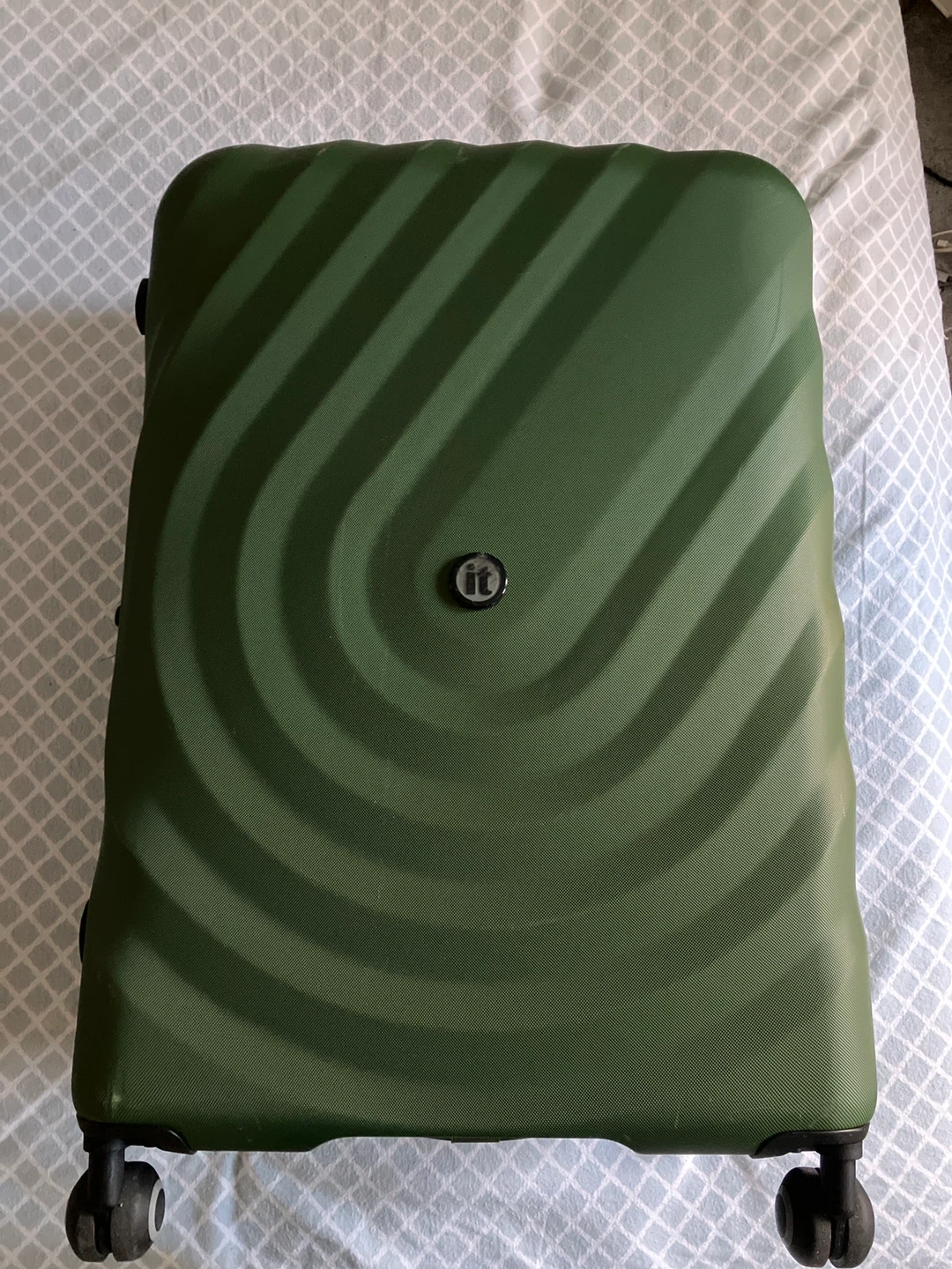 10Selling a nice IT Luggage suitcase in olive green. Only used once. Few scuffs but very good condition. Expandable 4 wheels 25/18/12 inches (medium sized)