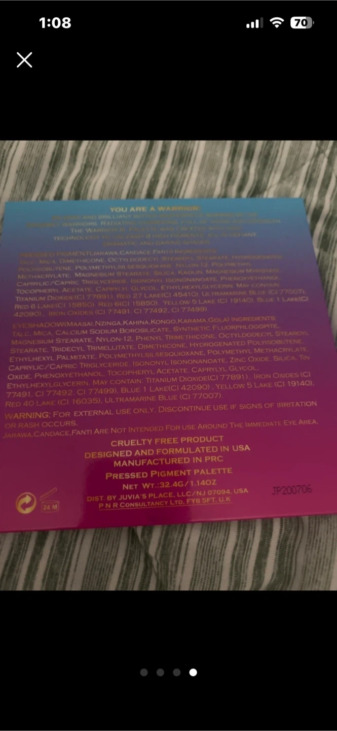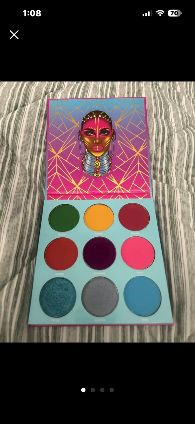 This Juvia's Place eyeshadow palette features nine vibrant shades. It's a pressed pigment palette designed and formulated in the USA. The shades offer a range of colours for various looks.