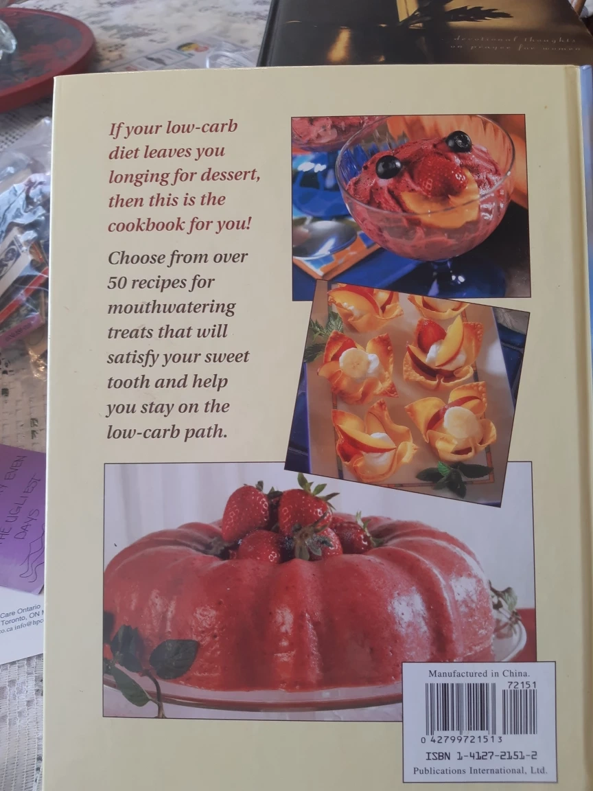 Cookbook features over 50 low-carb dessert recipes. Includes photos of finished desserts. Recipes for various treats to satisfy your sweet tooth. Beautiful pictures.