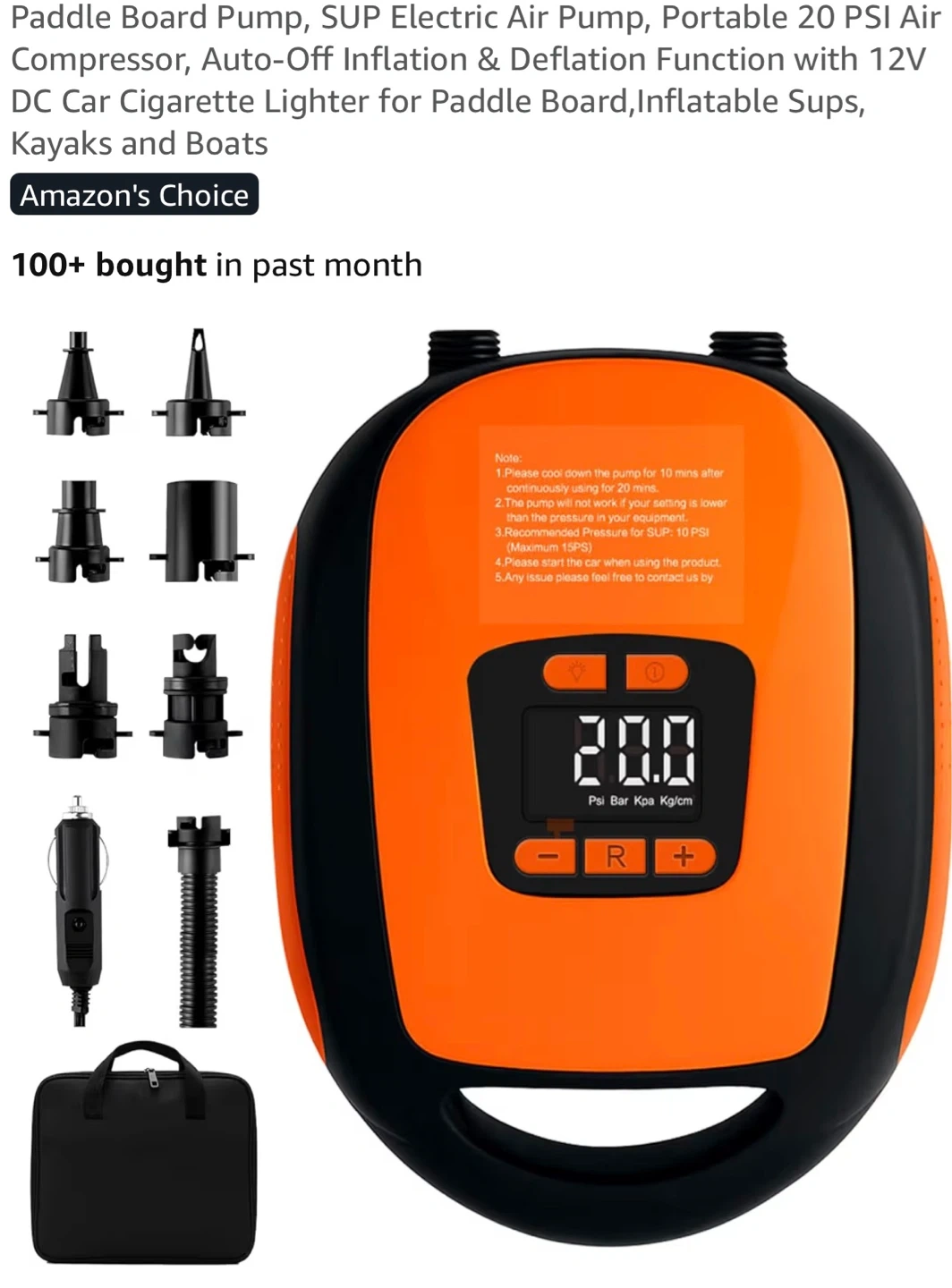 Portable Electric Air Pump for Paddle Boards and Inflatables PB6